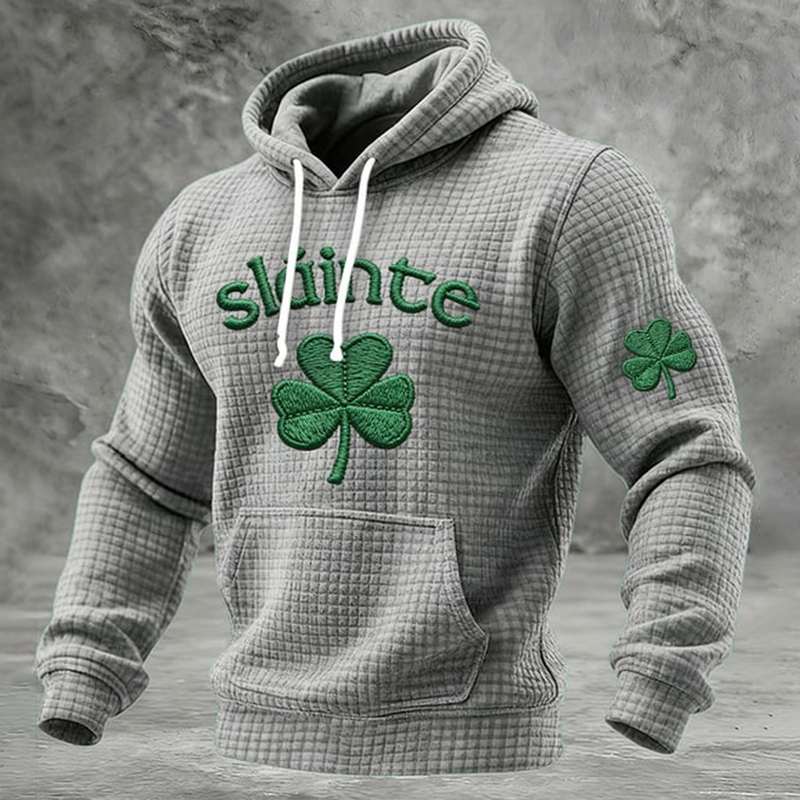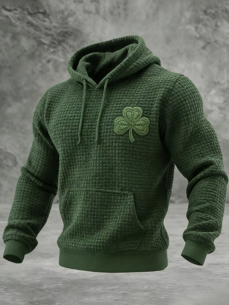 Men's St. Patrick's Day Shamrock Print Waffle Casual Hoodie