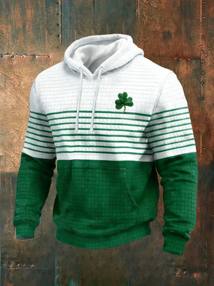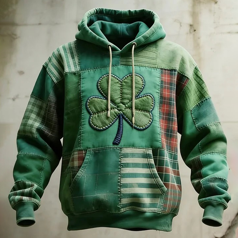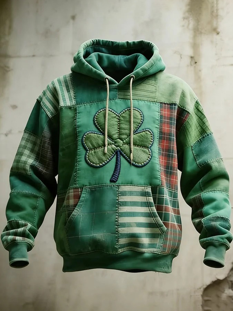 Men's Casual St. Patrick's Day Shamrock Patchwork Print Hoodie