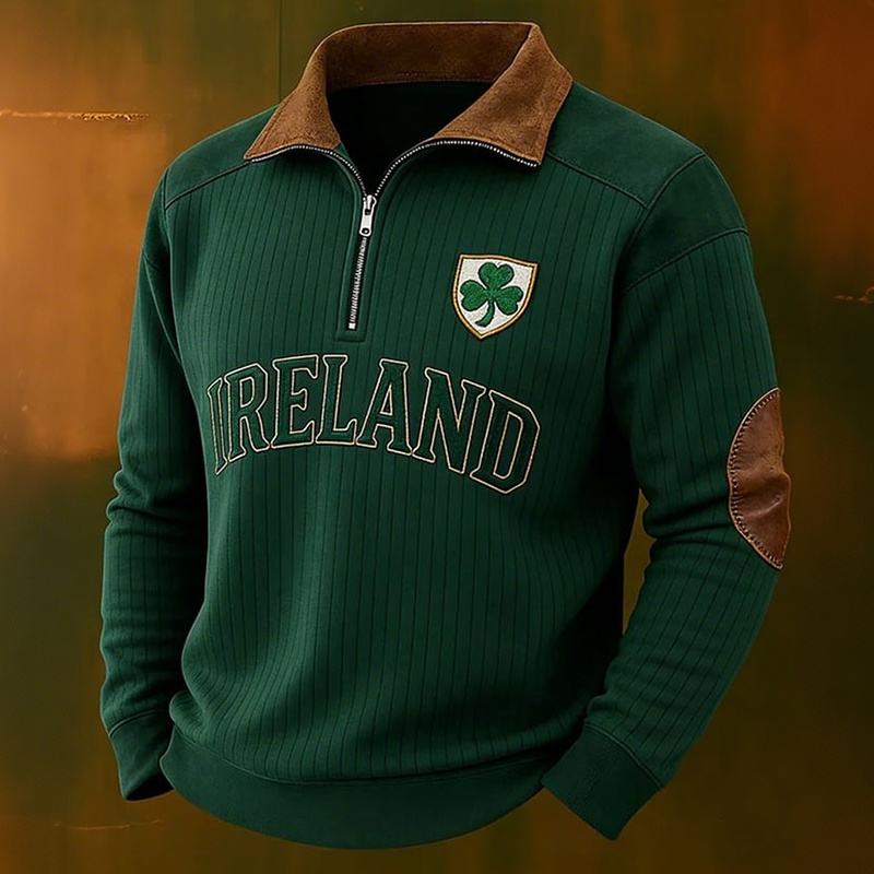 Men's Vintage St. Patrick's Day Printed Knitted Zip-up Fleece Jacket