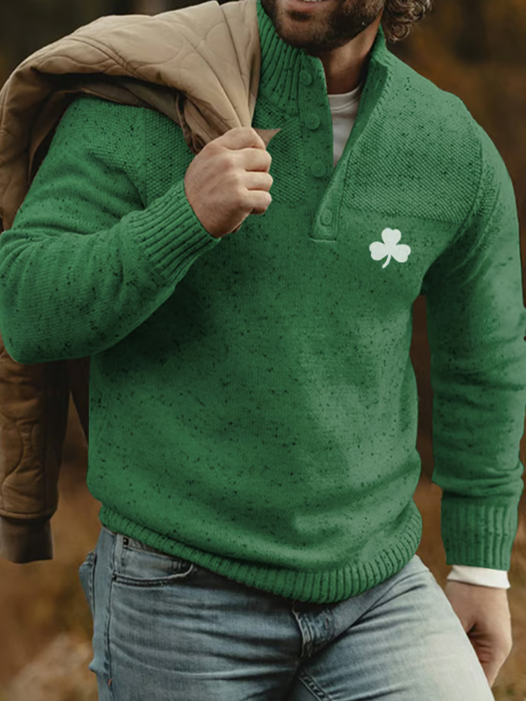 Men's Shamrock Celtic Jacquard Contrast Color Sweater
