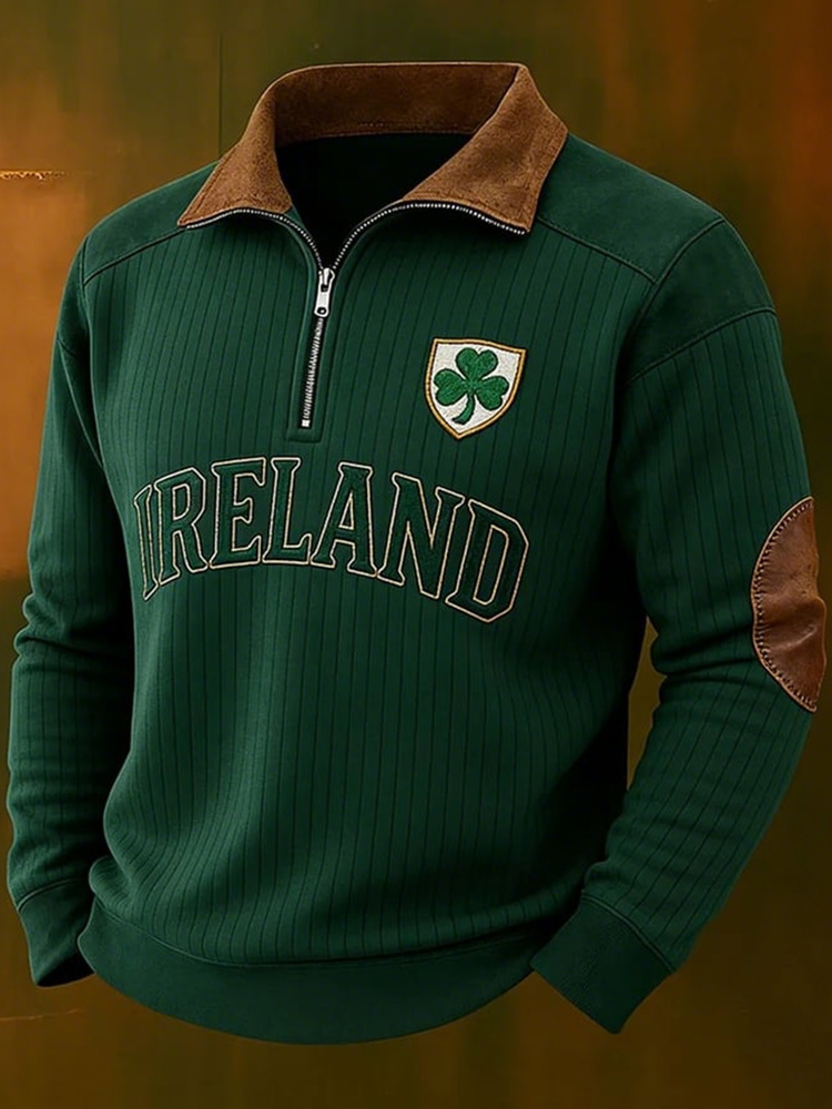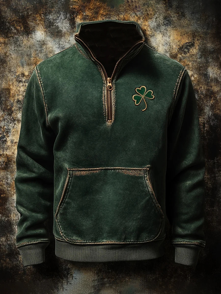 St. Patrick's Day Shamrock Print Half-zip Sweatshirt