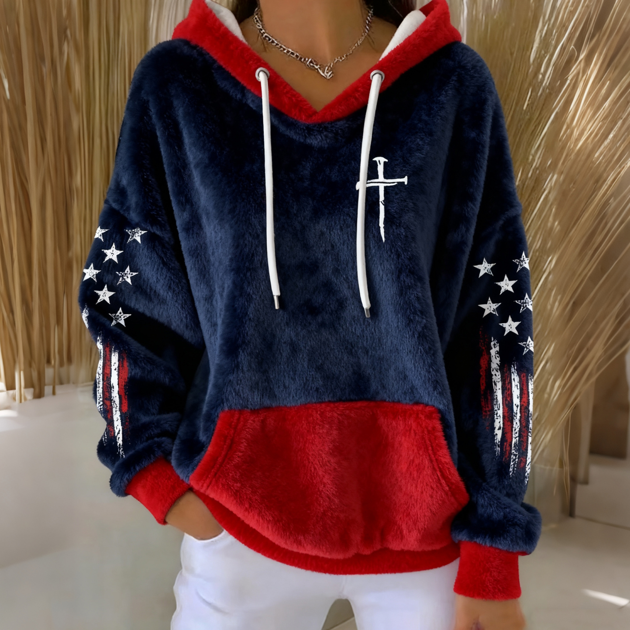 Women's Christian Cross Art Flannel Hoodie
