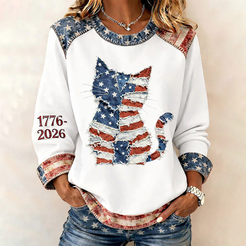Women's 250th By Flag Cute Cat Patchwork Print Sweatshirts