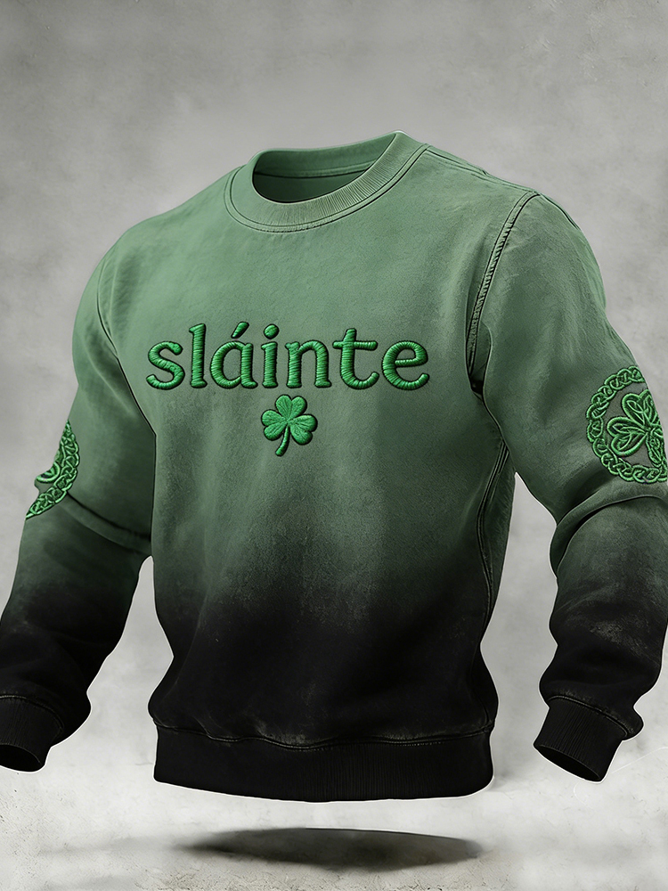 Women's Vintage St Patrick's Day Shamrock Art Loose And Comfortable Cotton And Linen Round Neck Shirt