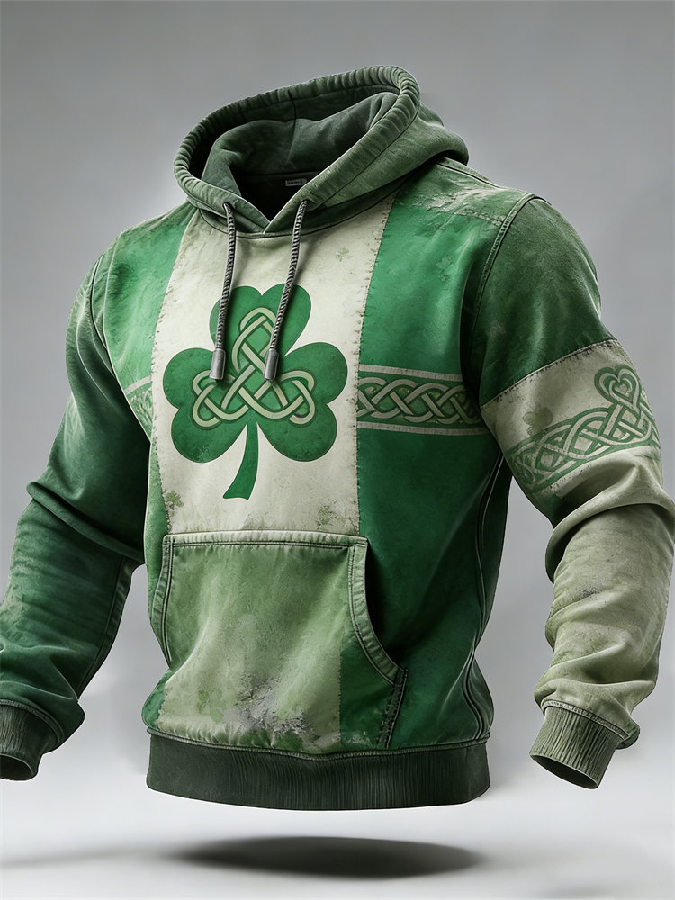 Men's St Patrick's Day Shamrock With Celtic Knot Cross Art Checkered Sweatshirt