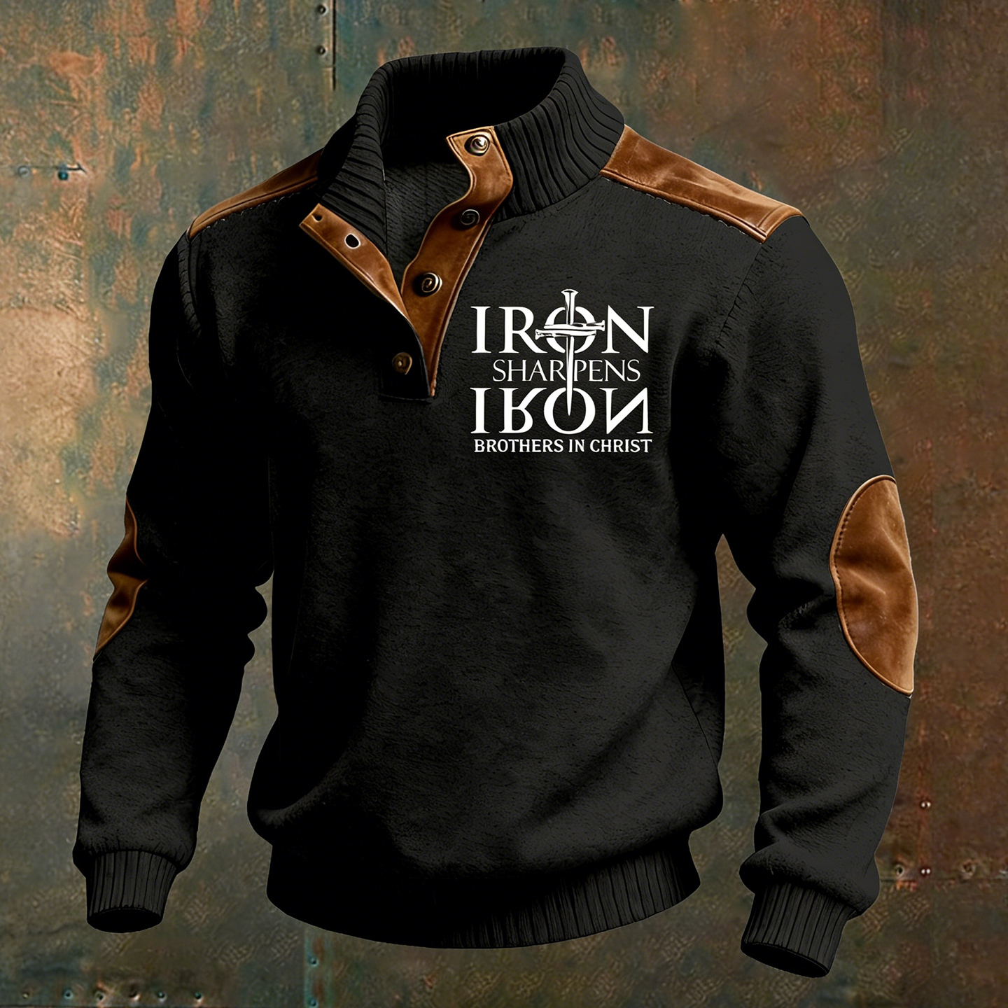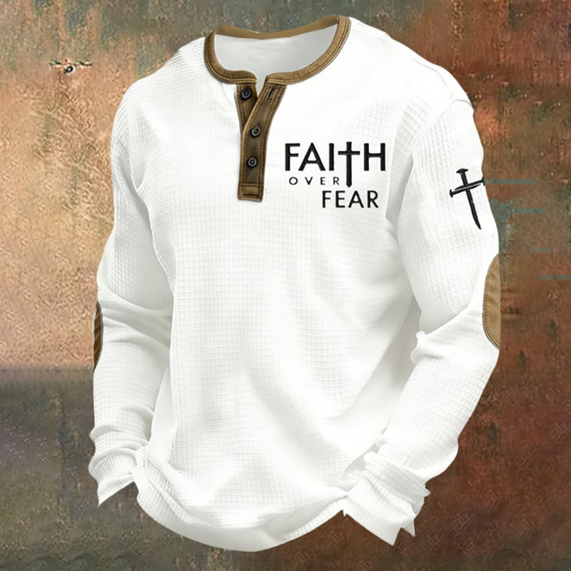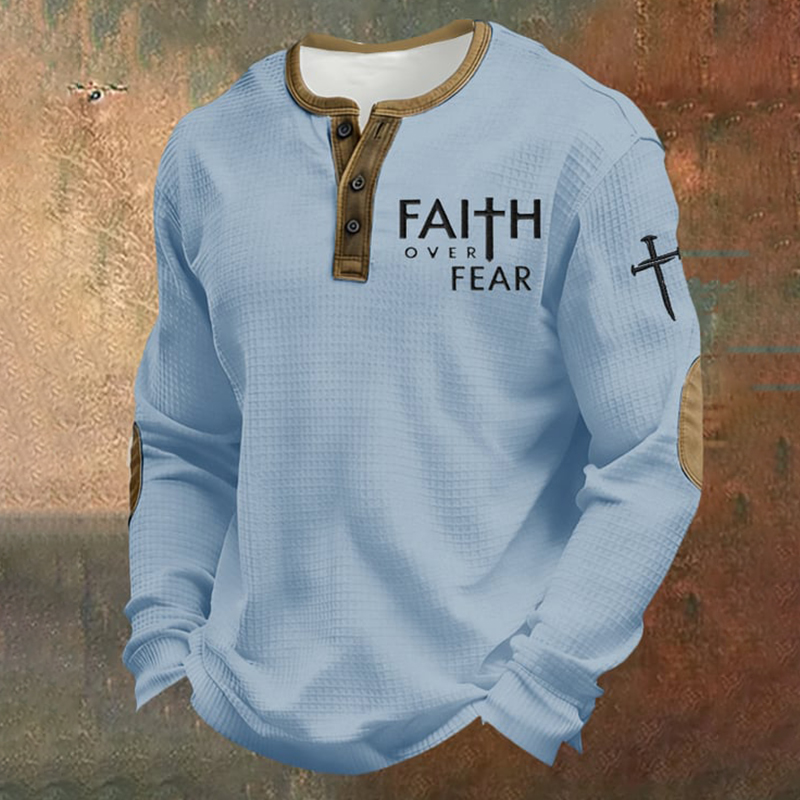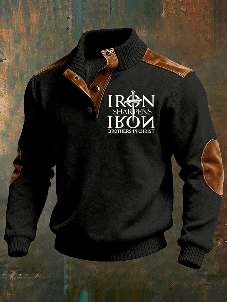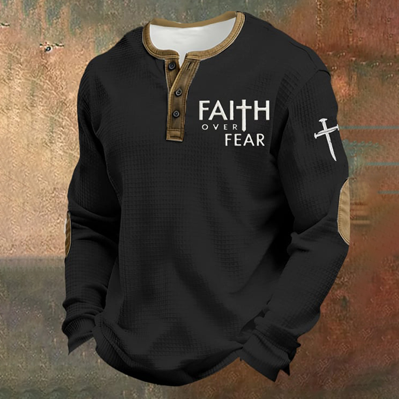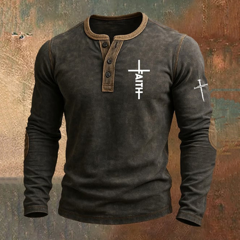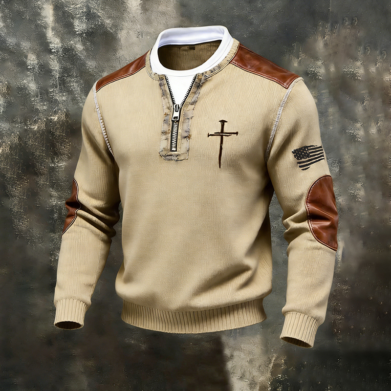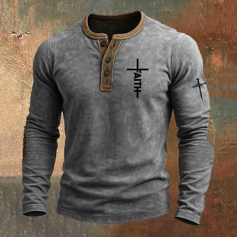 Men's Retro Faux Two-piece Spliced color-block Faith Design Long-sleeved Sweatshirt