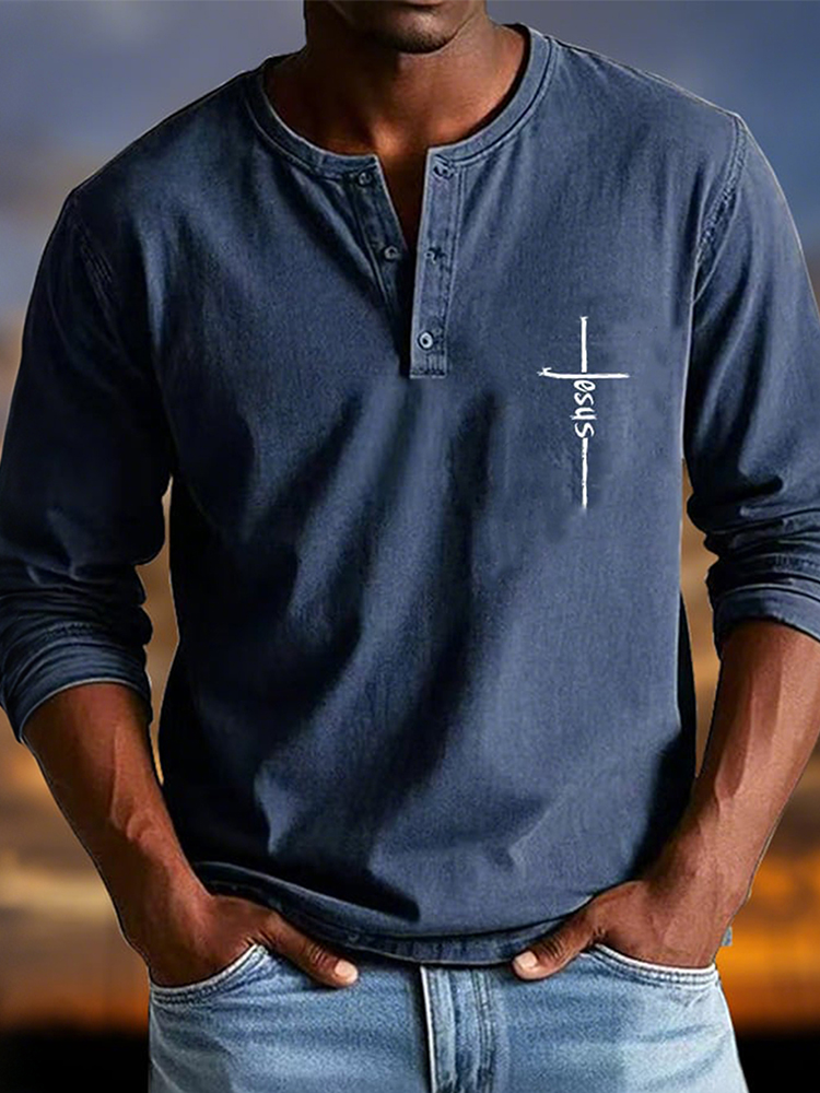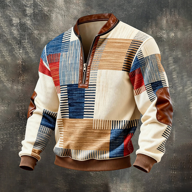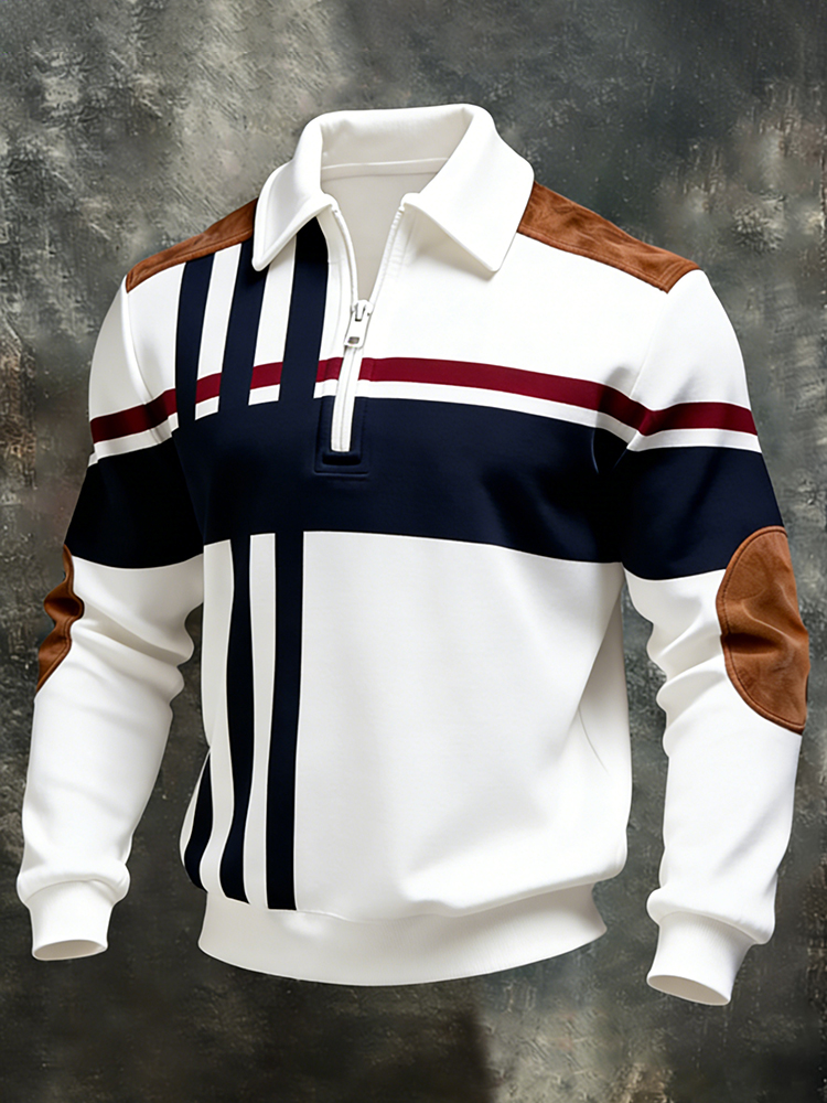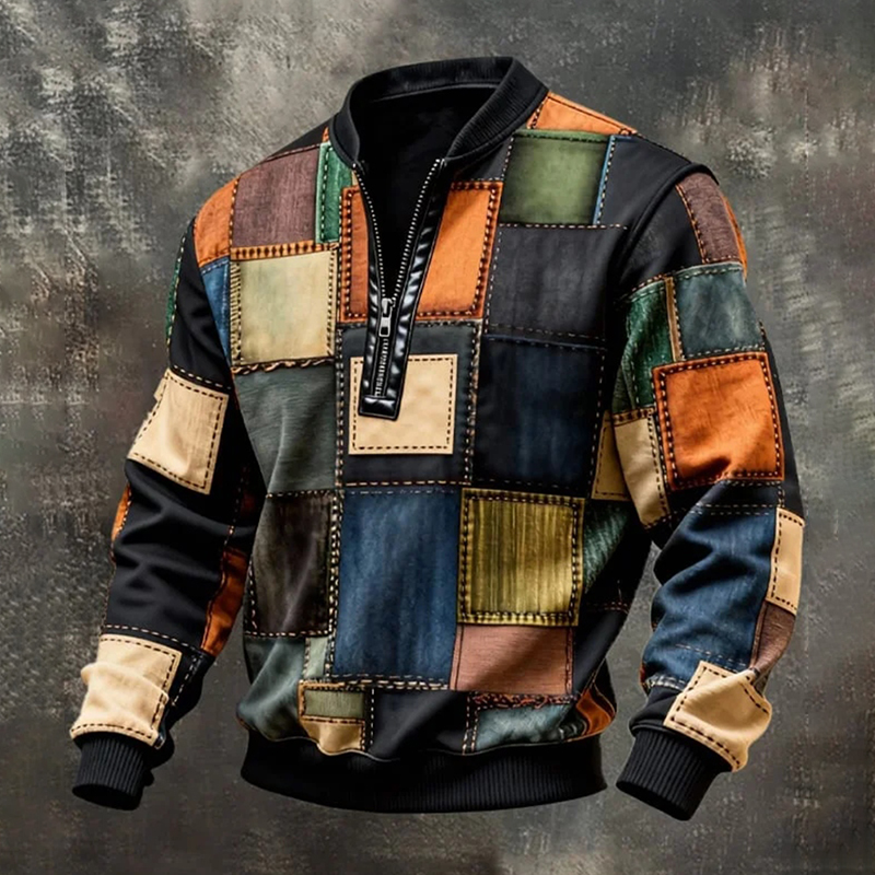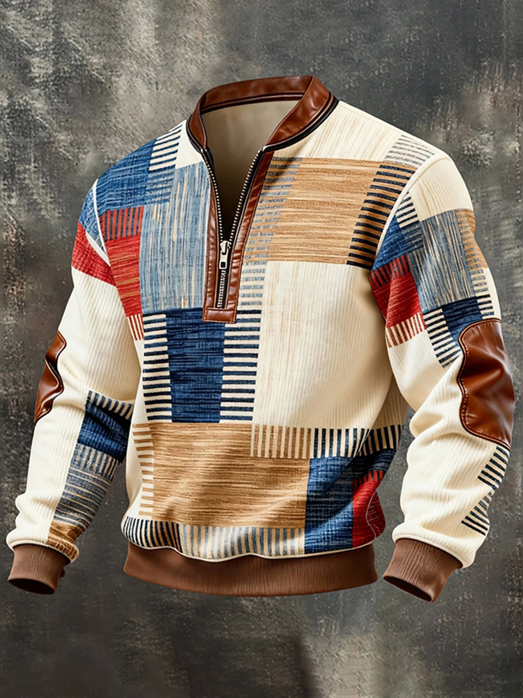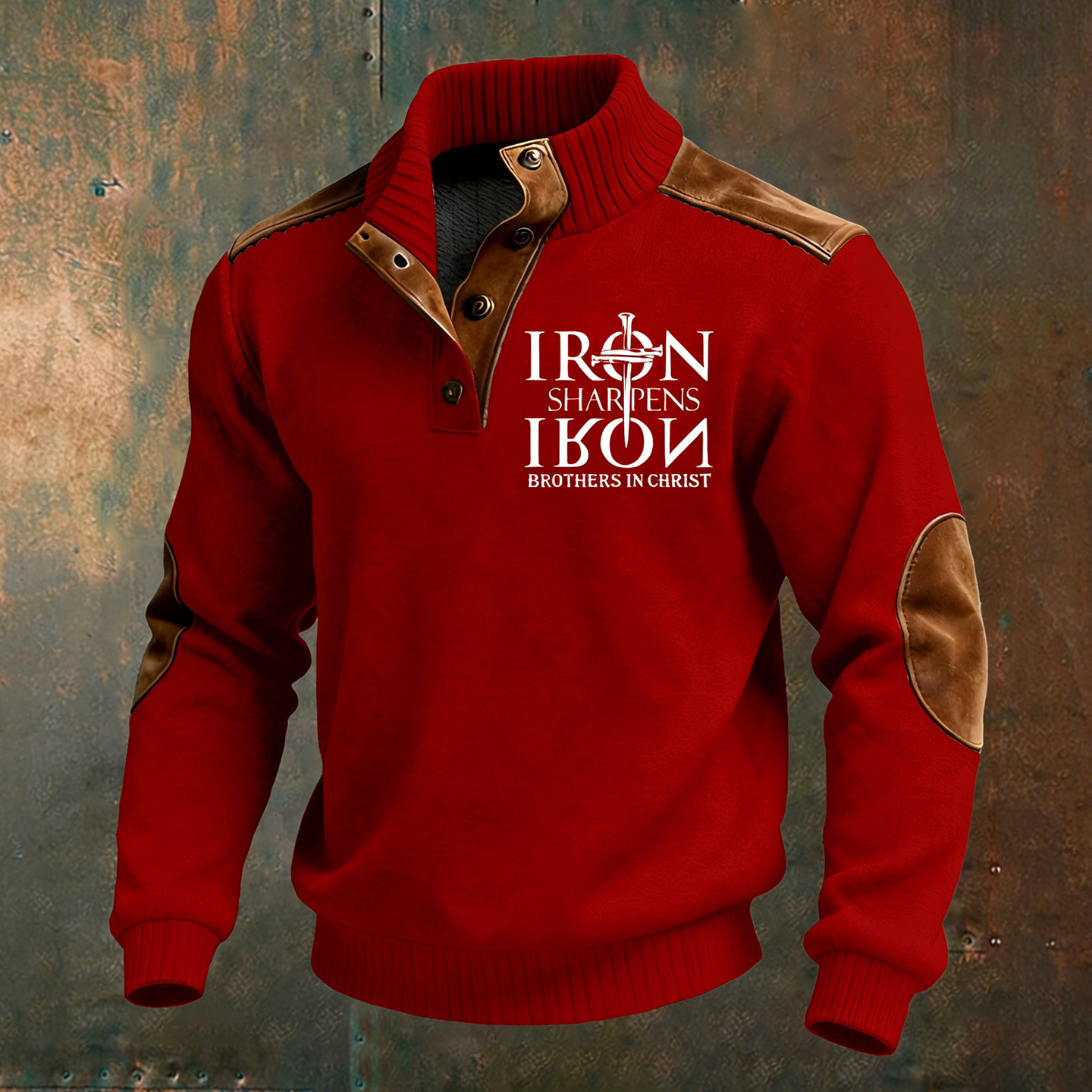Men's Retro Faux Two-piece Spliced color-block Faith Design Long-sleeved Sweatshirt