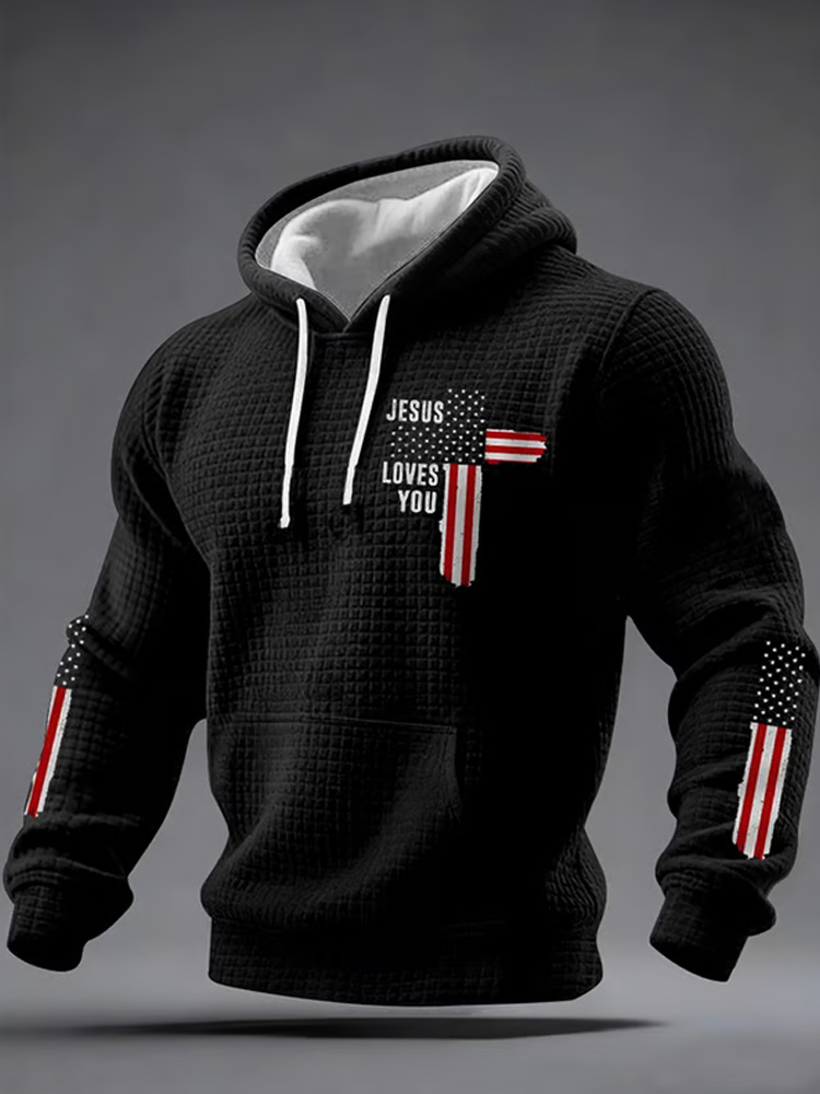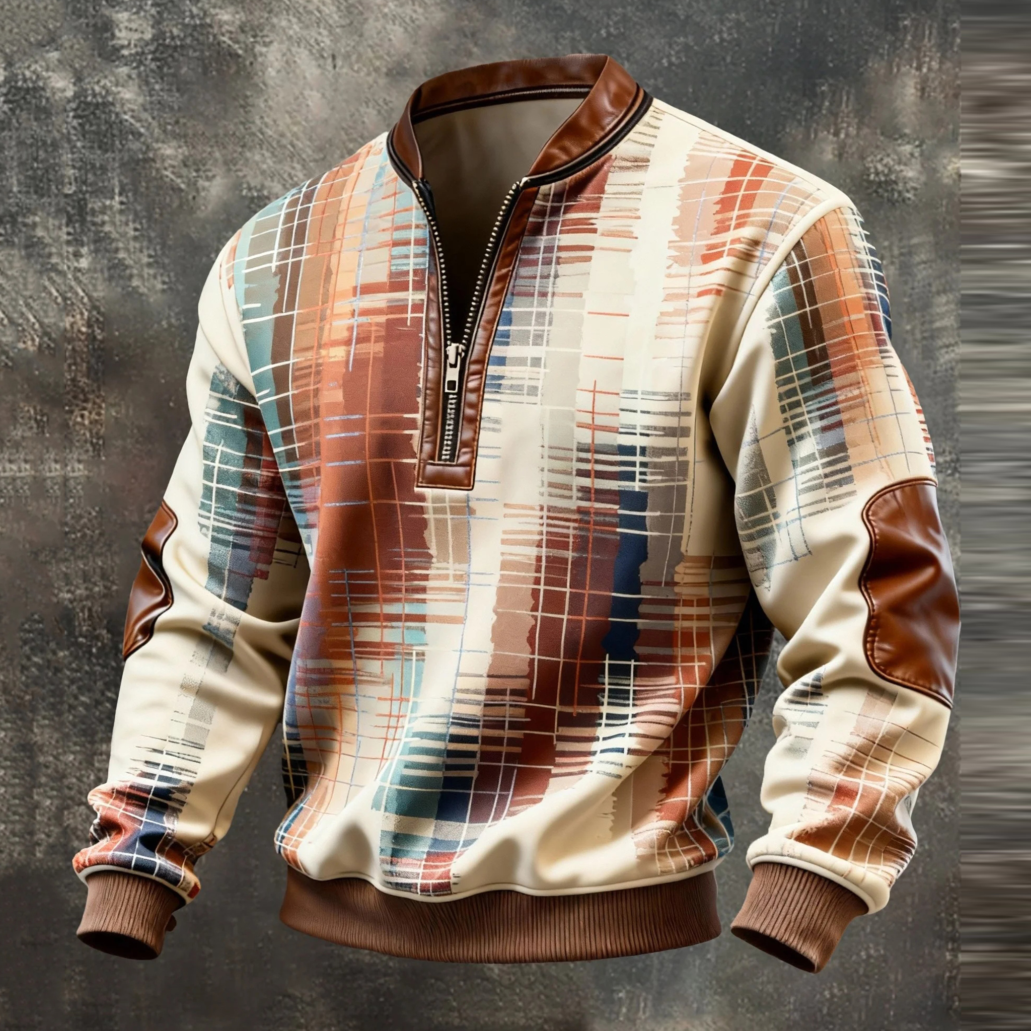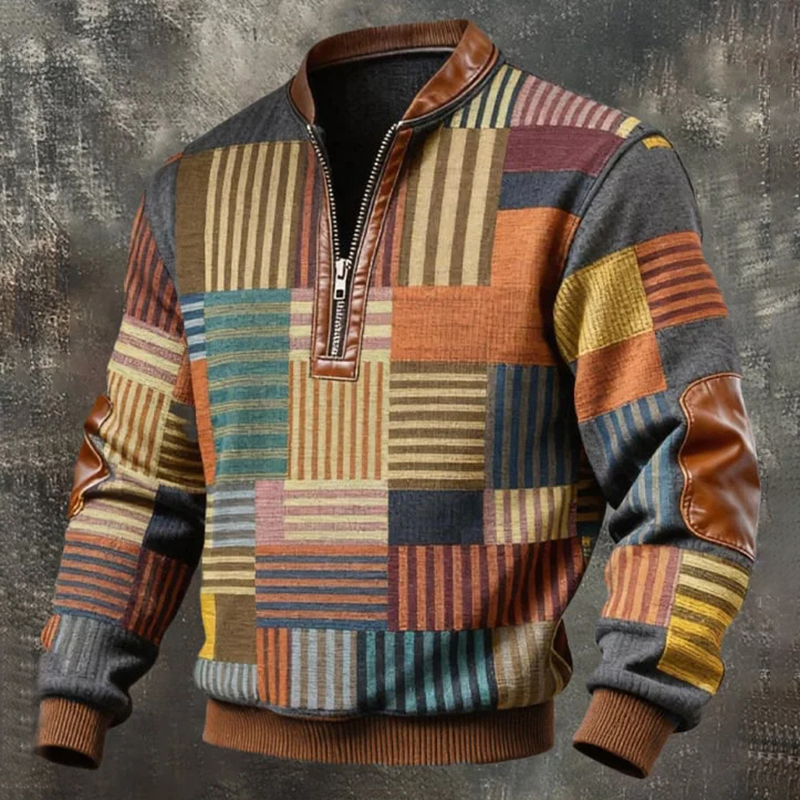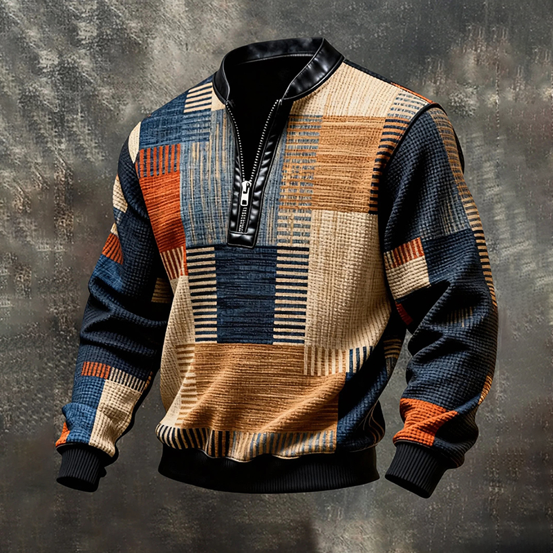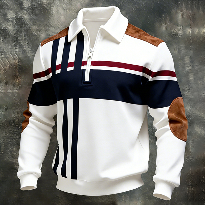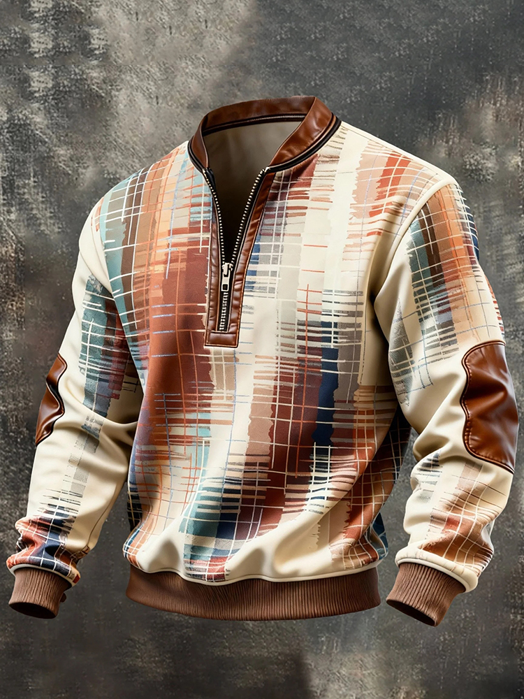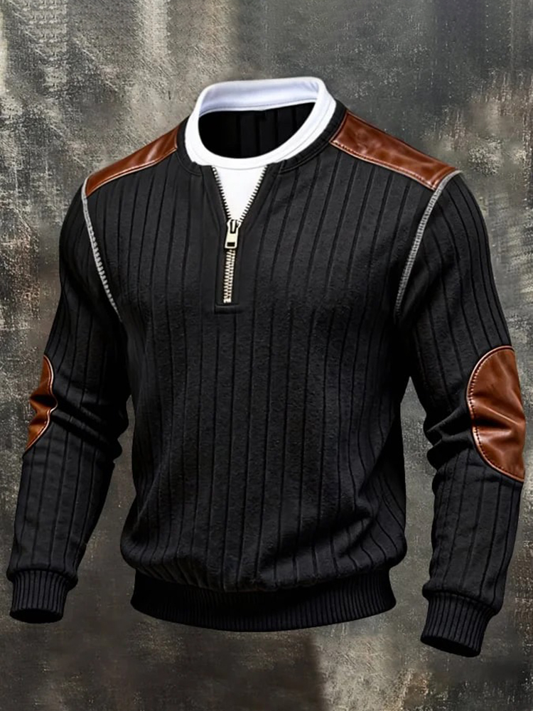 Men's Retro Faux Two-piece Spliced color-block Faith Design Long-sleeved Sweatshirt