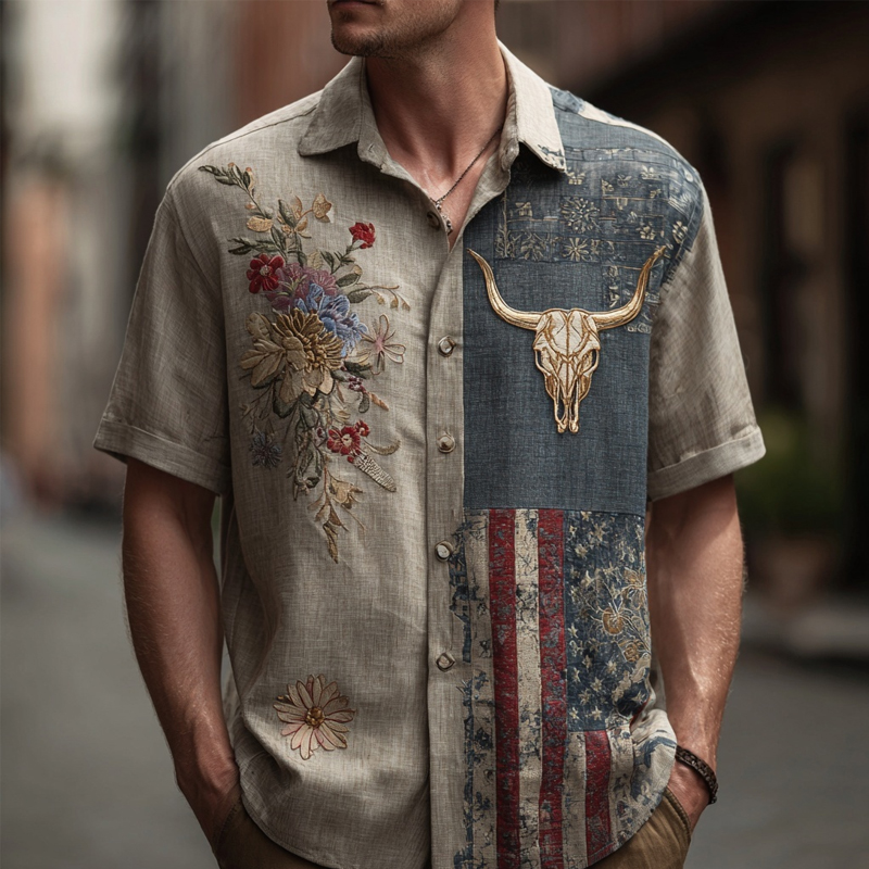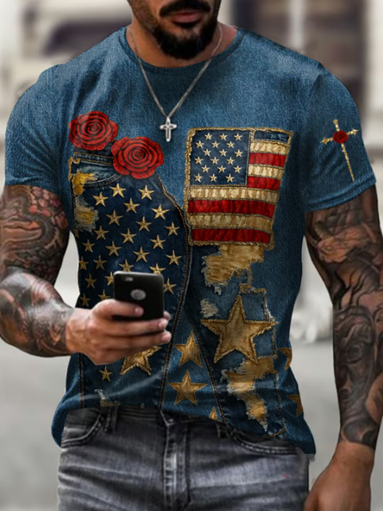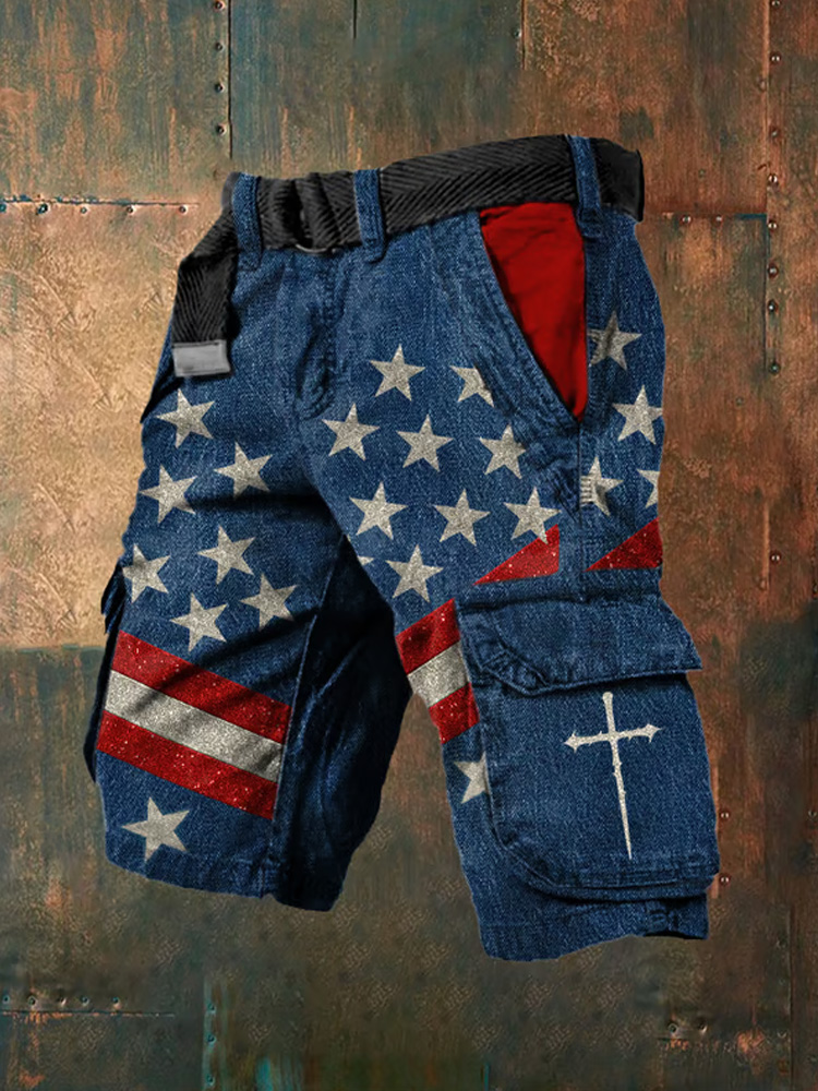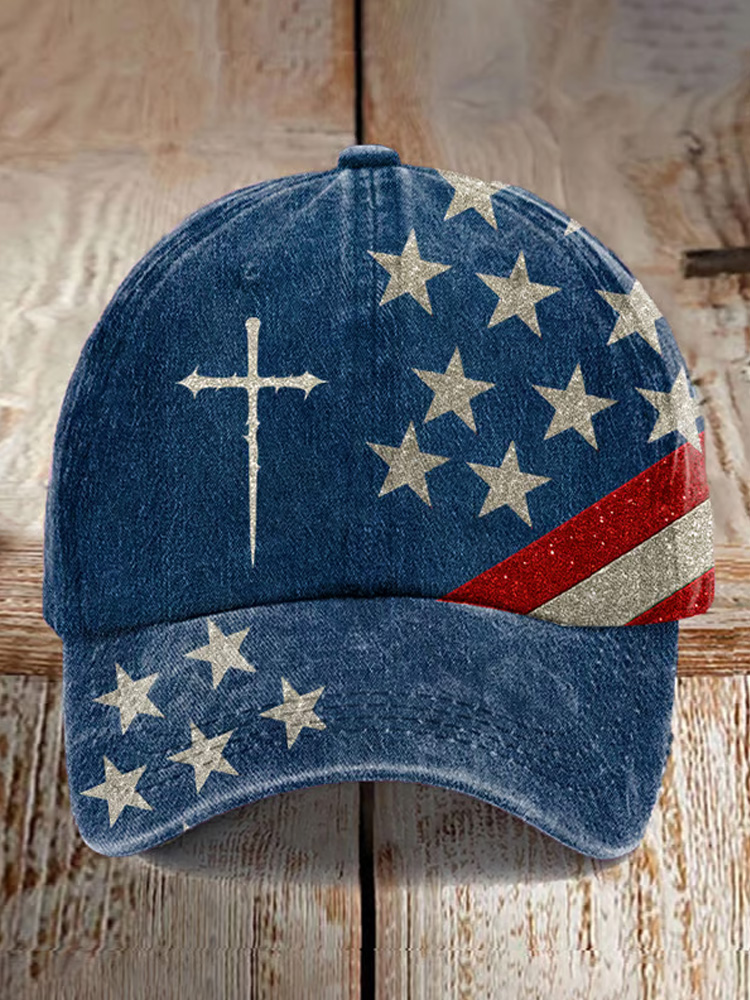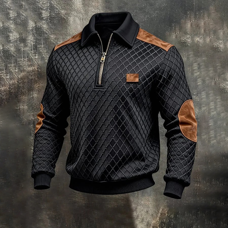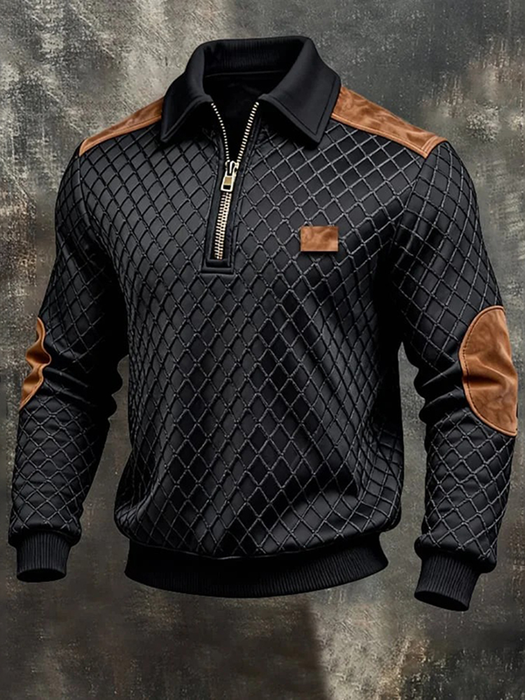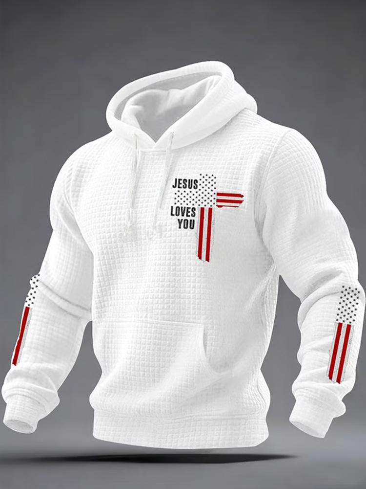 Men's Retro Faux Two-piece Spliced color-block Faith Design Long-sleeved Sweatshirt