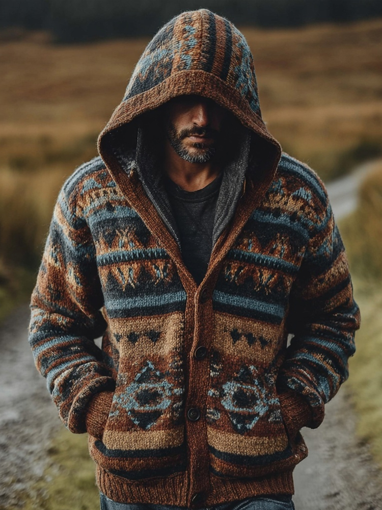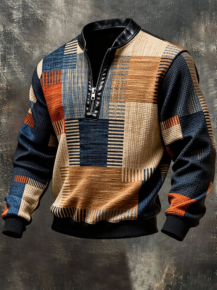 Men's Retro God Is Good All The Time Color-block Design Knit Half-zip Turtleneck Sweatshirt