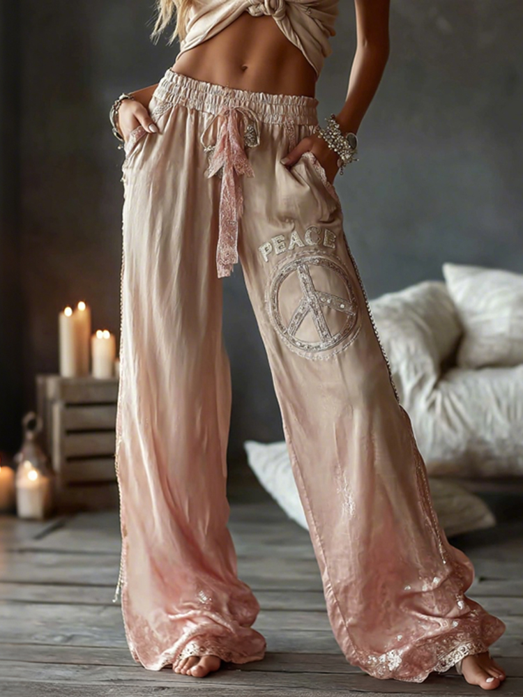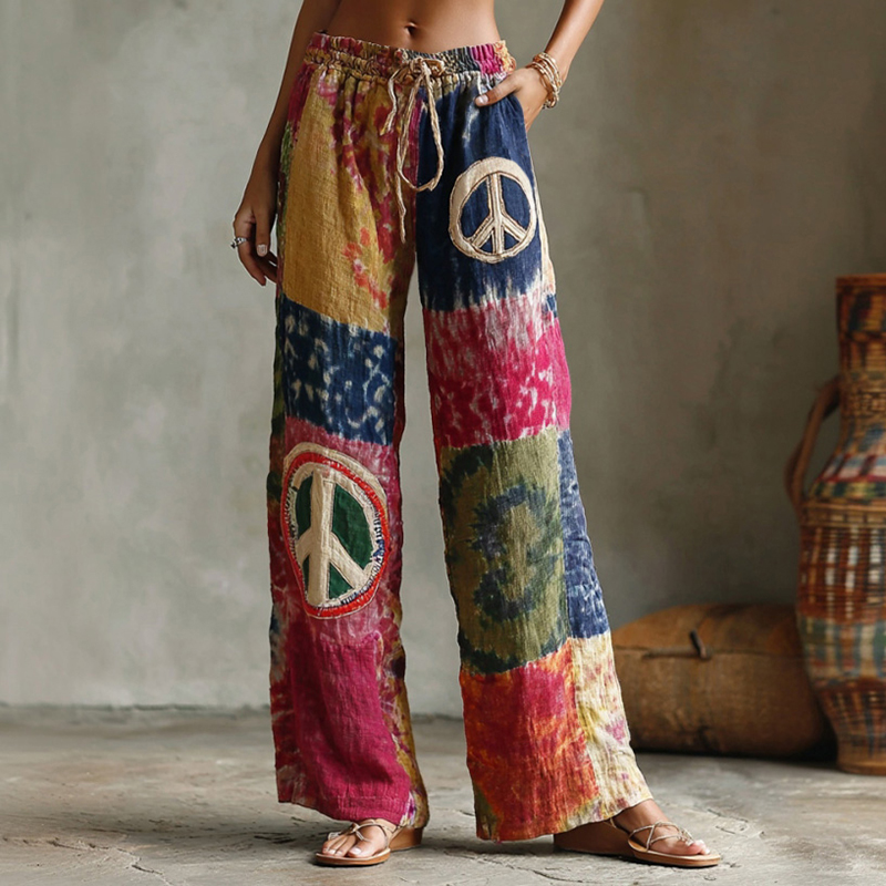 Women's Vintage Peace Sign Bird Hippie Art Print Casual Round Neck Short Sleeve T-shirt