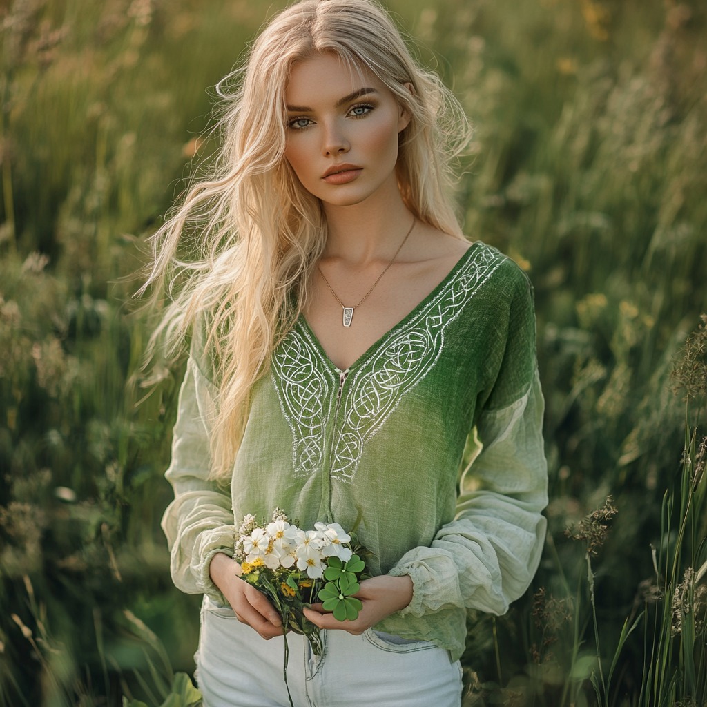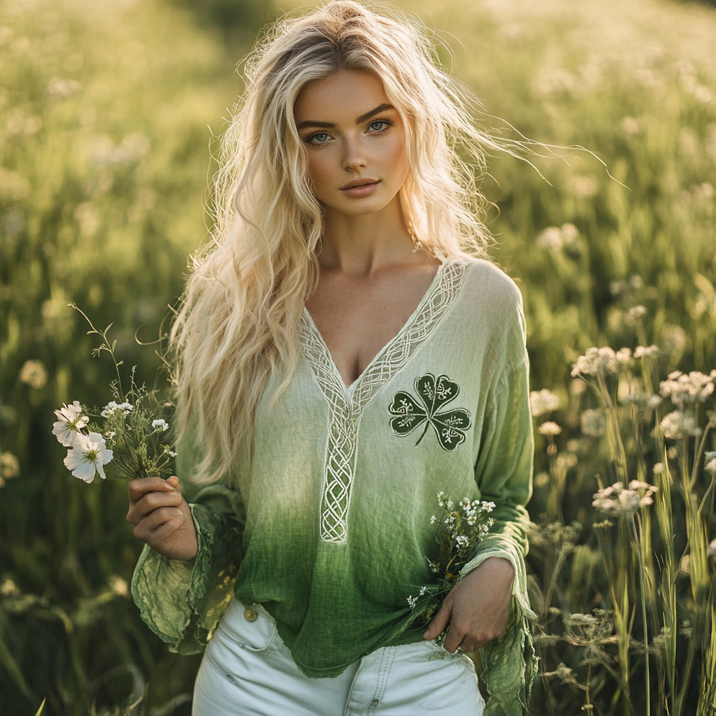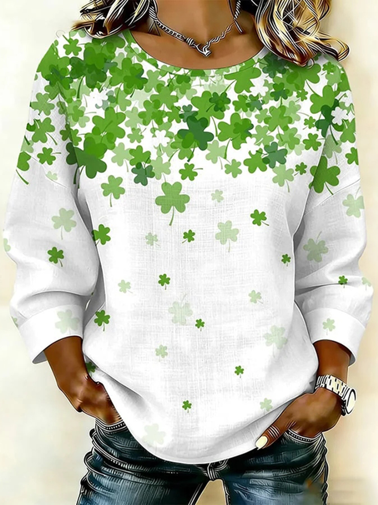 Women's Vintage St Patrick's Day Shamrock Art Loose And Comfortable Cotton And Linen Round Neck Shirt
