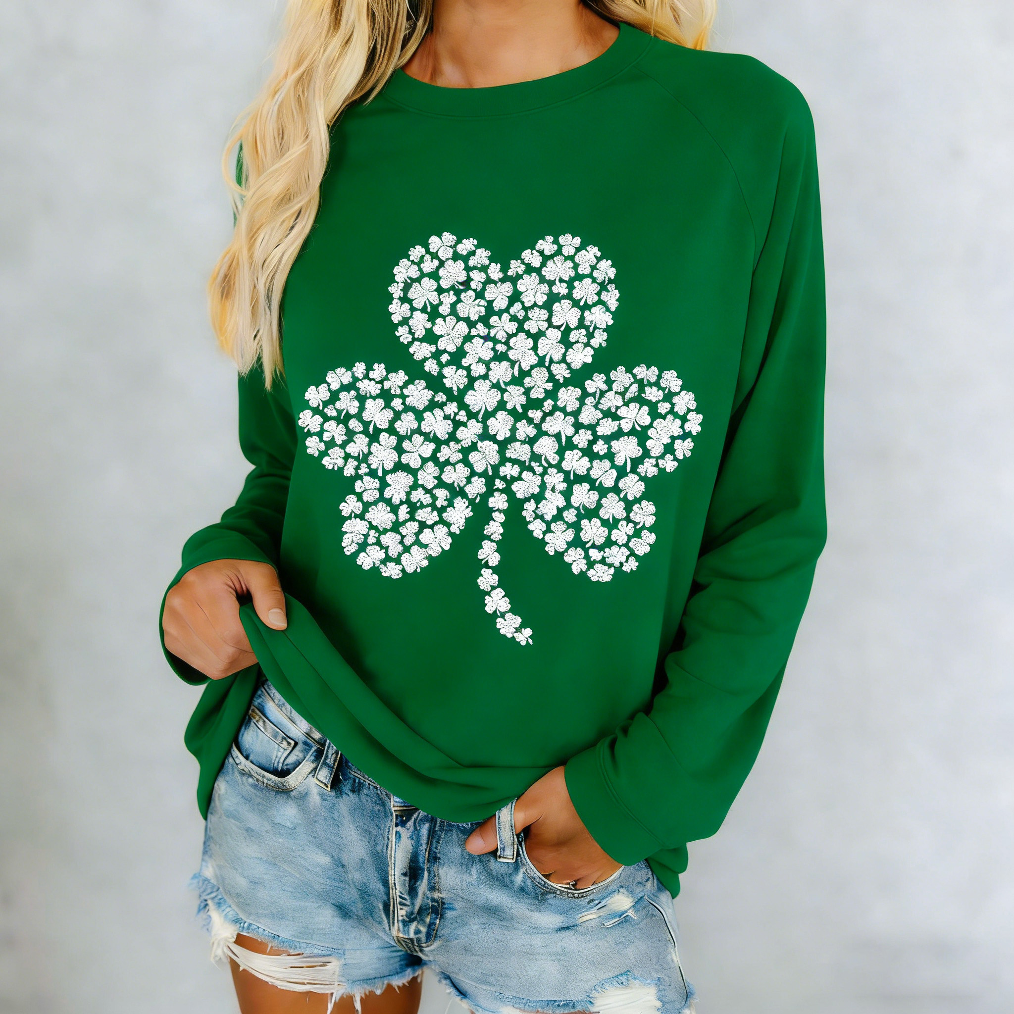 Women's St. Patrick's Day Shamrock Print Color Block Comfortable Crew Neck Sweatshirt