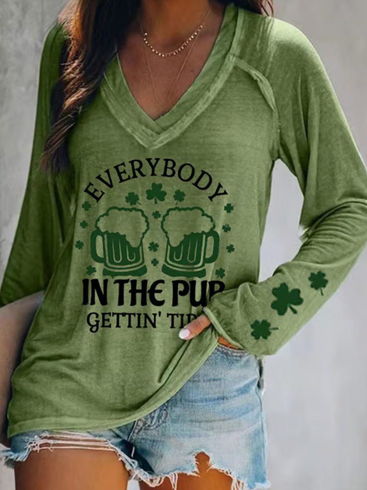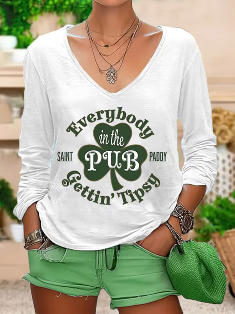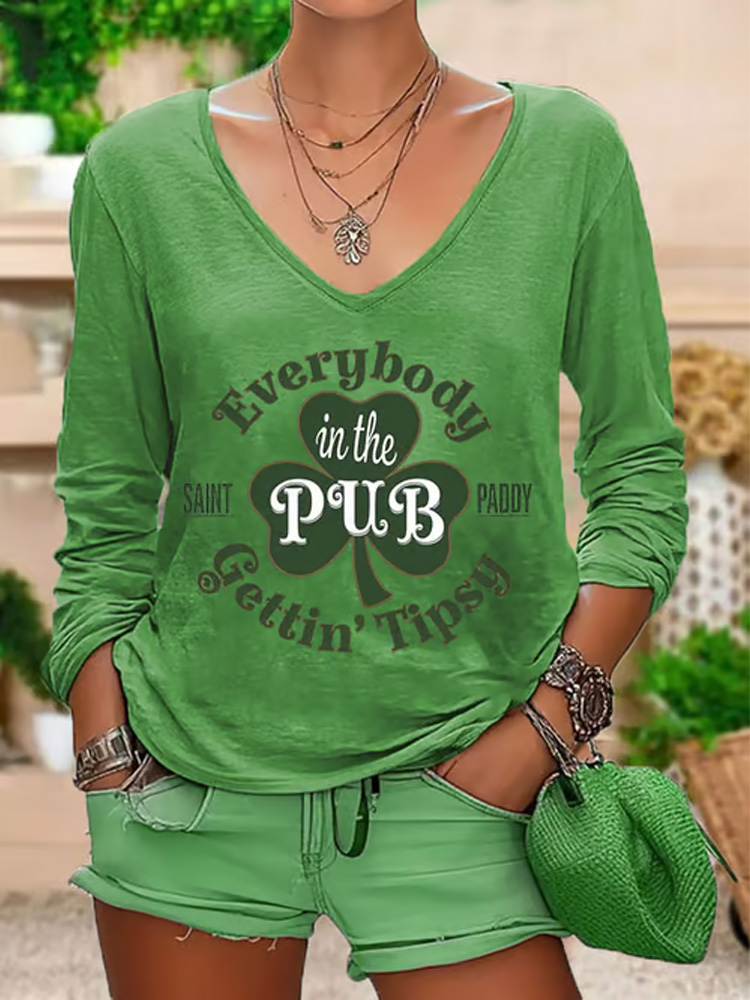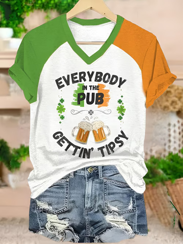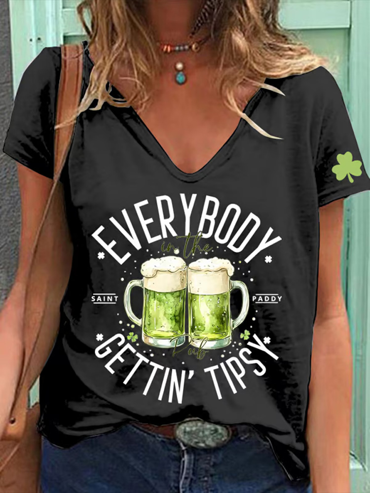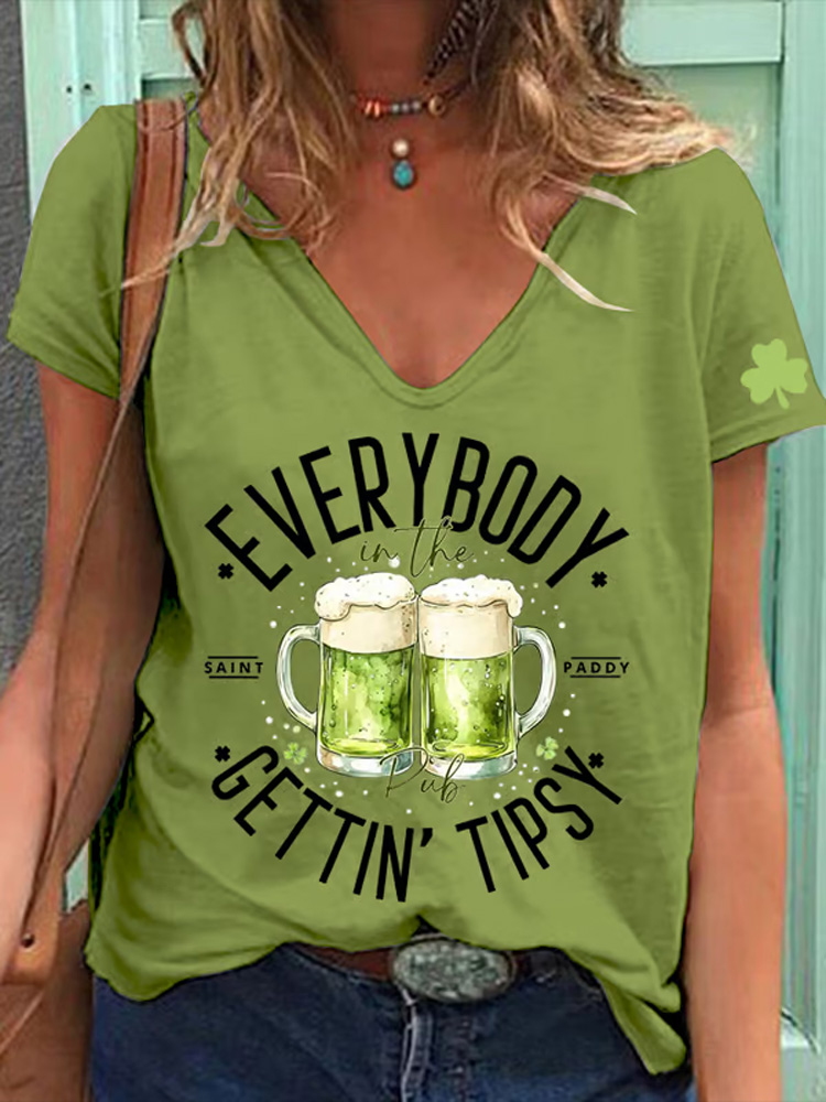Women's St. Patrick's Day Everybody In The Pub Getting Tipsy Printed V-neck T-shirt