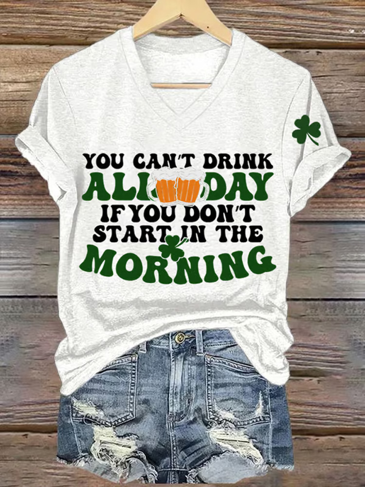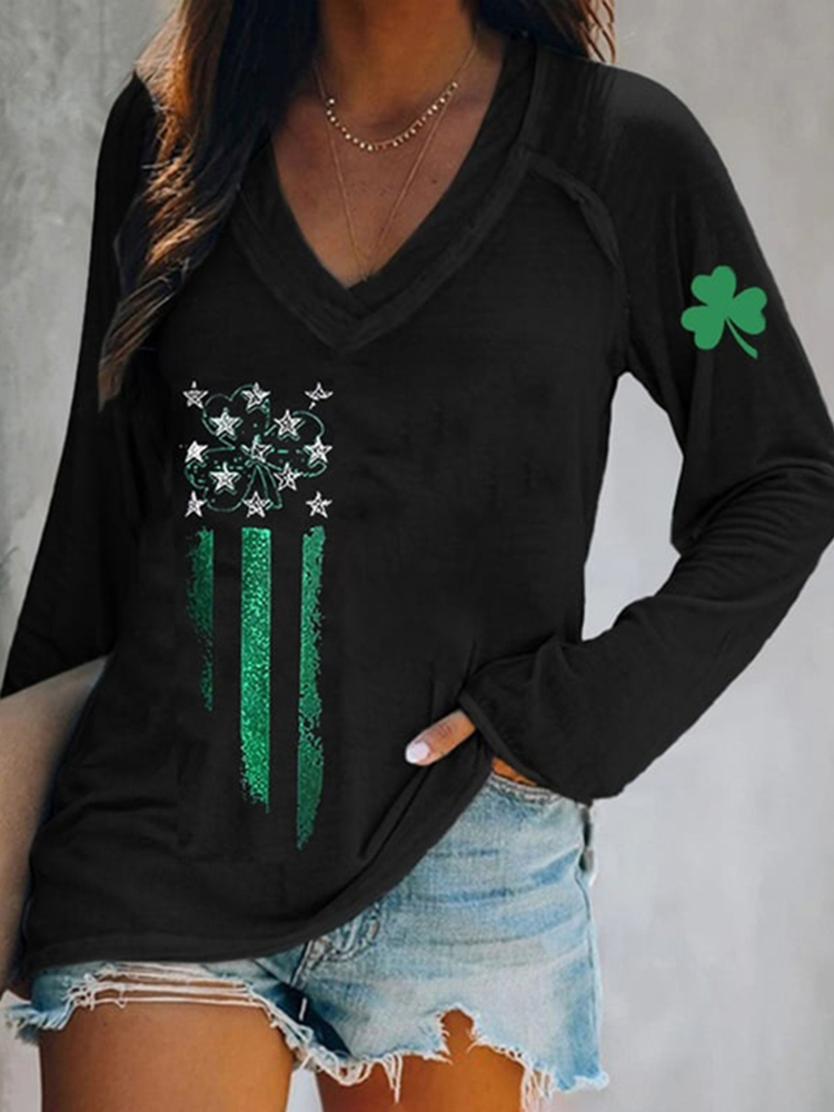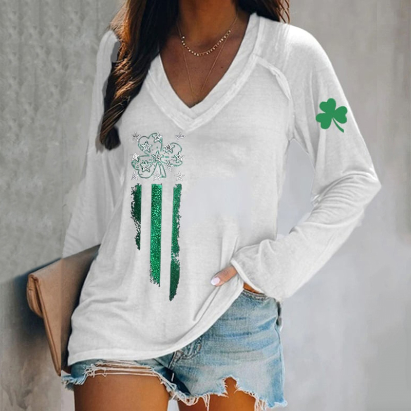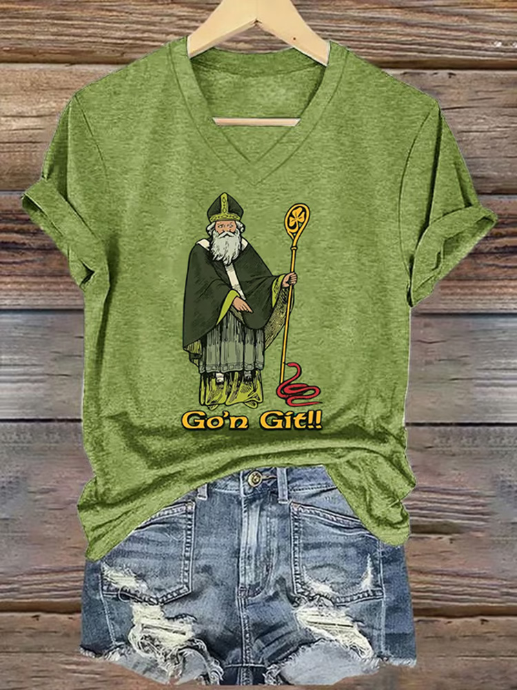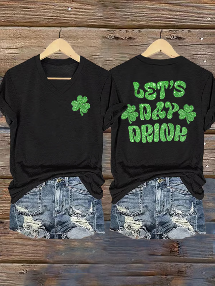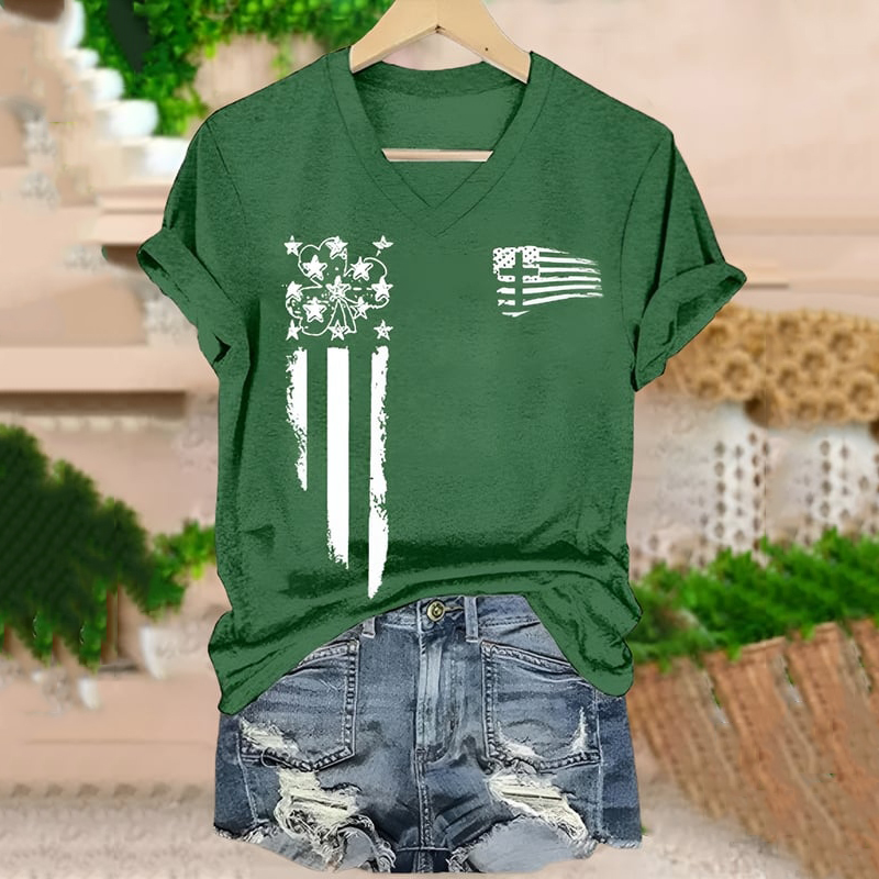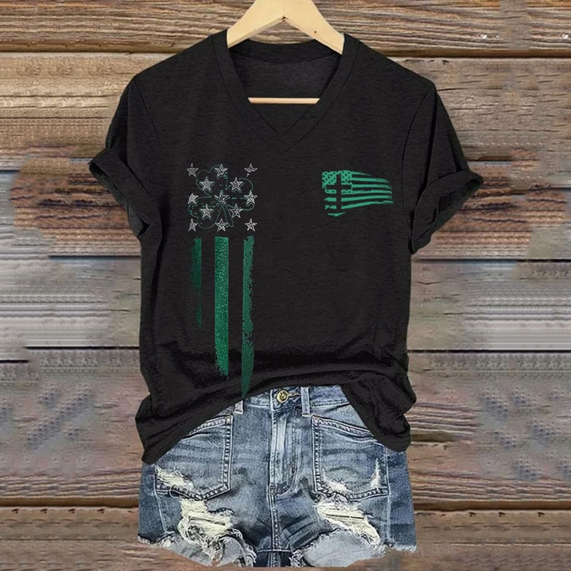 Women's St. Patrick's Day Print V-neck Short Sleeve T-shirt