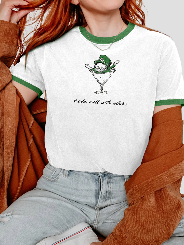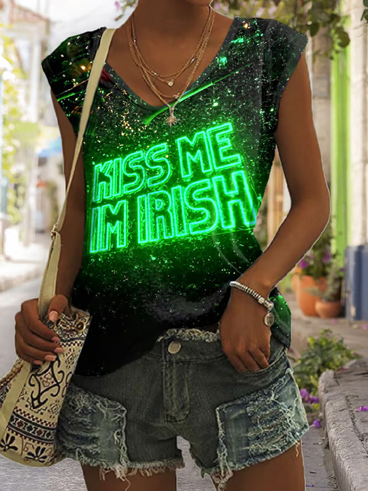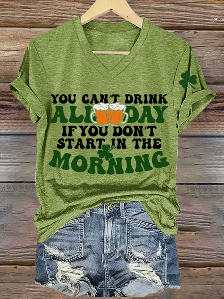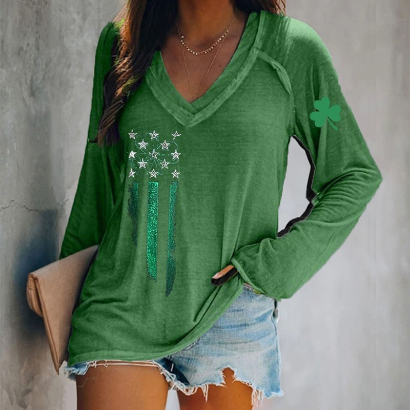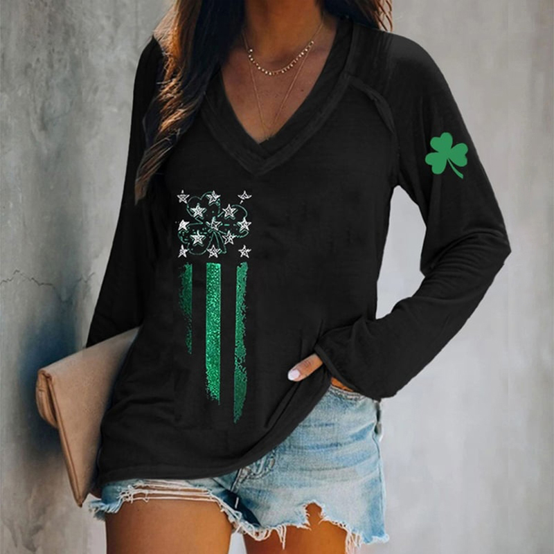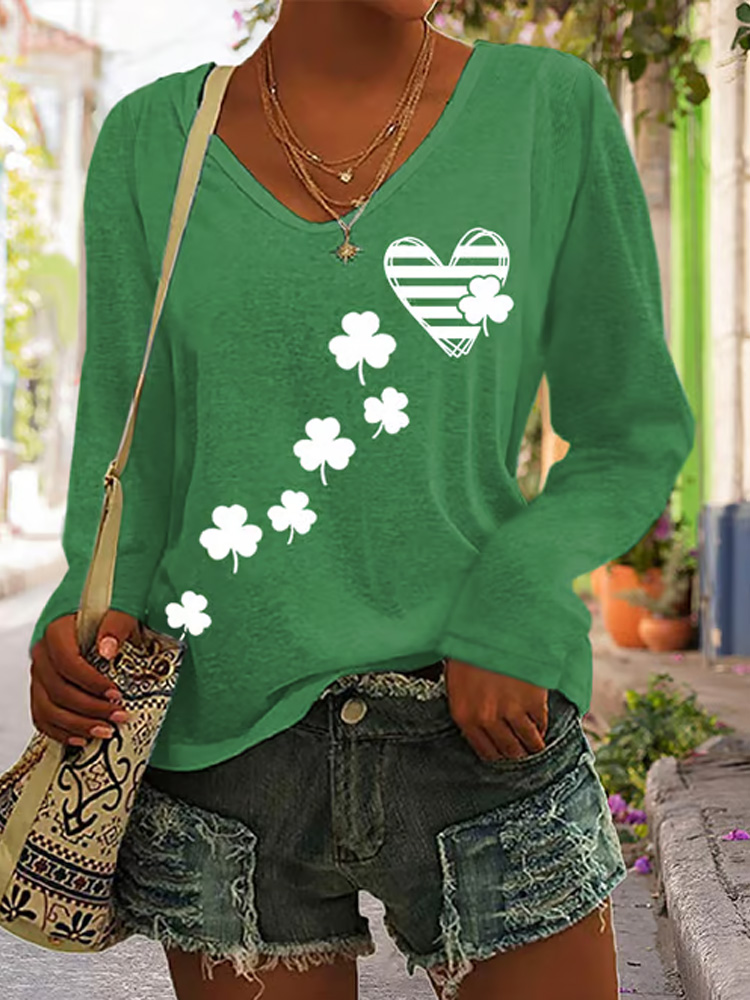 Women's St. Patrick's Day Print V-neck Short Sleeve T-shirt