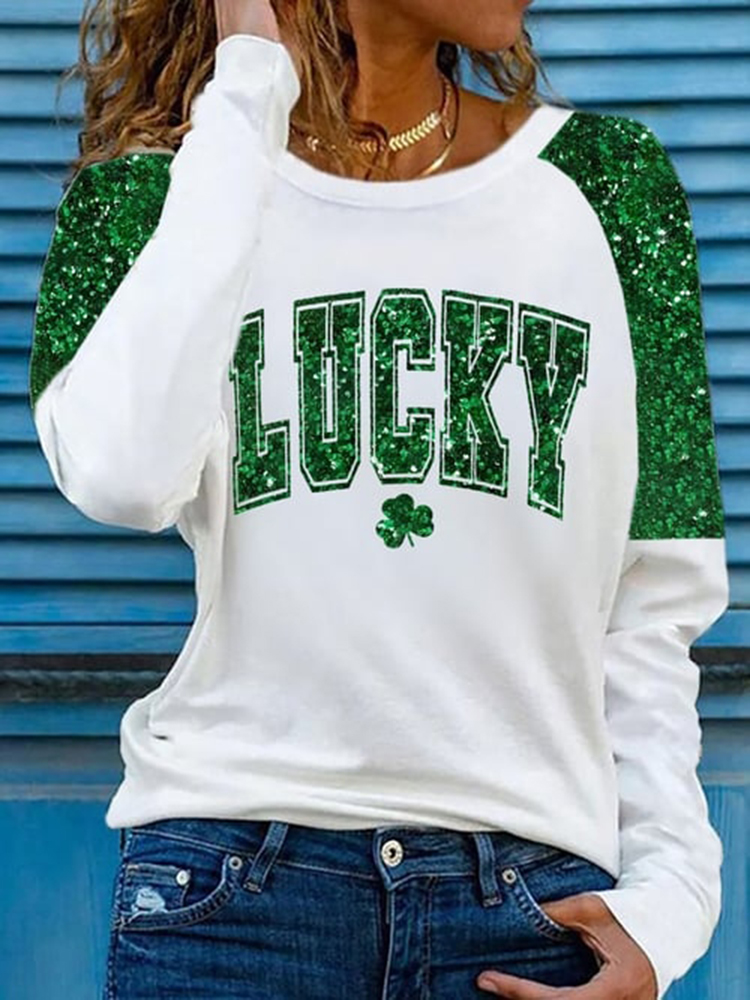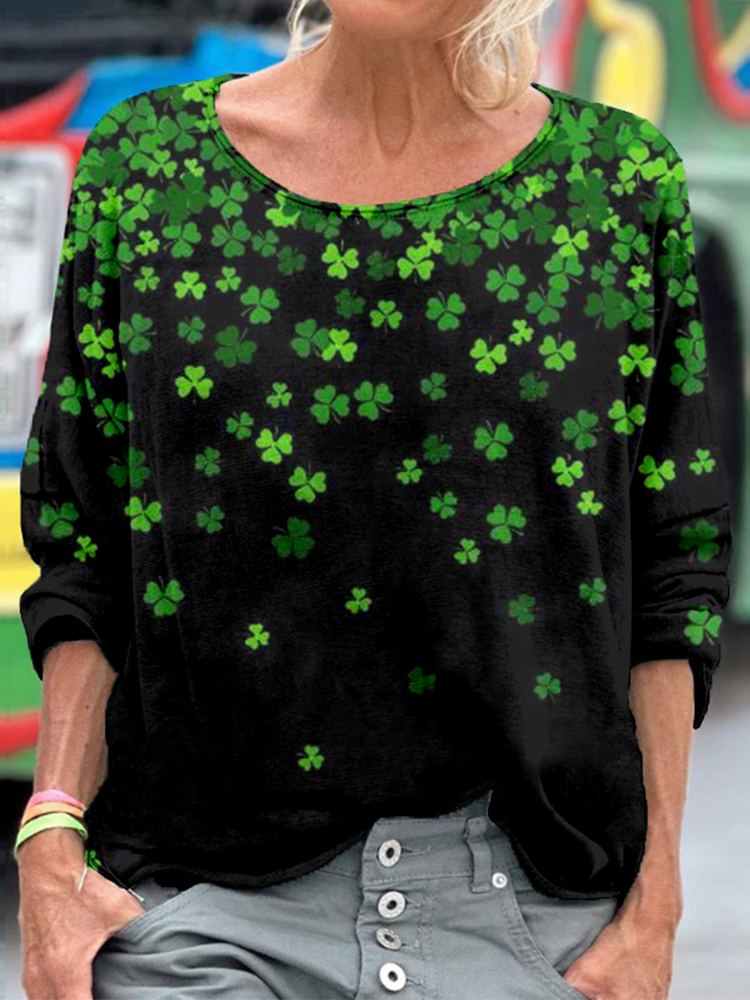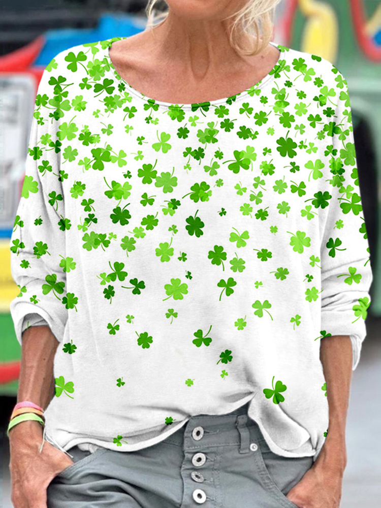 Women's Tie-dye Style St. Patrick's Day Shamrock Pattern Comfortable Crew Neck T-shirt