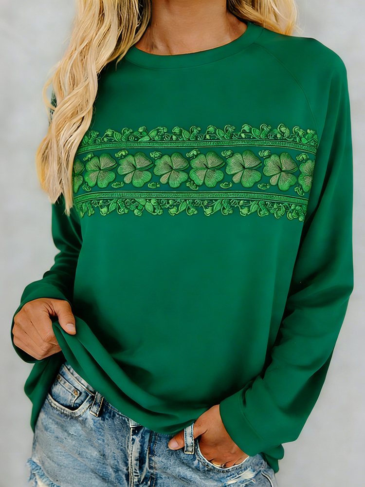 Women's Vintage St Patrick's Day Shamrock Art Loose And Comfortable Cotton And Linen V Neck Shirt