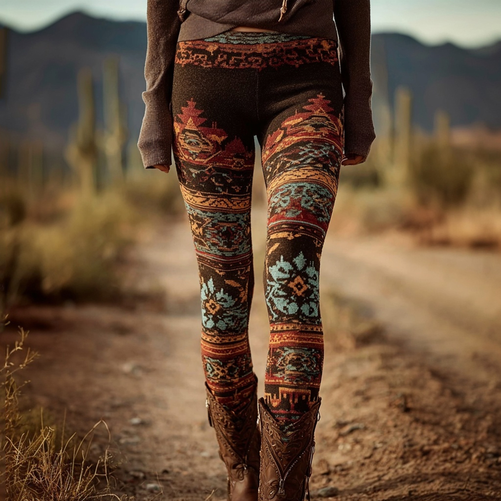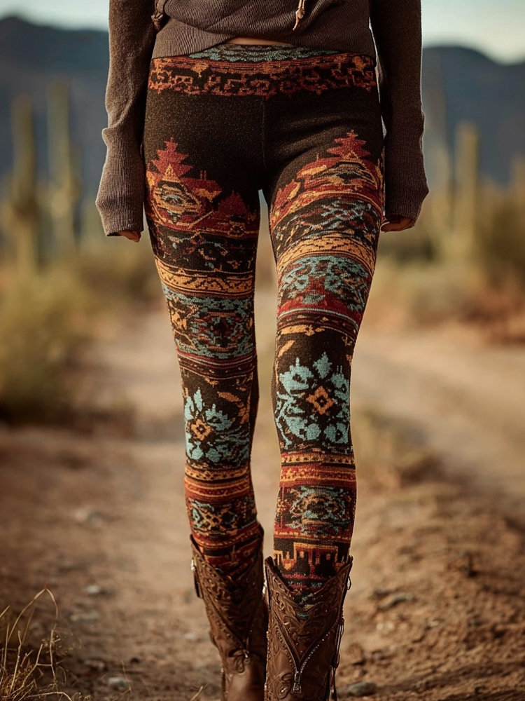 Classy Retro Western Aztec Pattern Cozy Knit Leggings