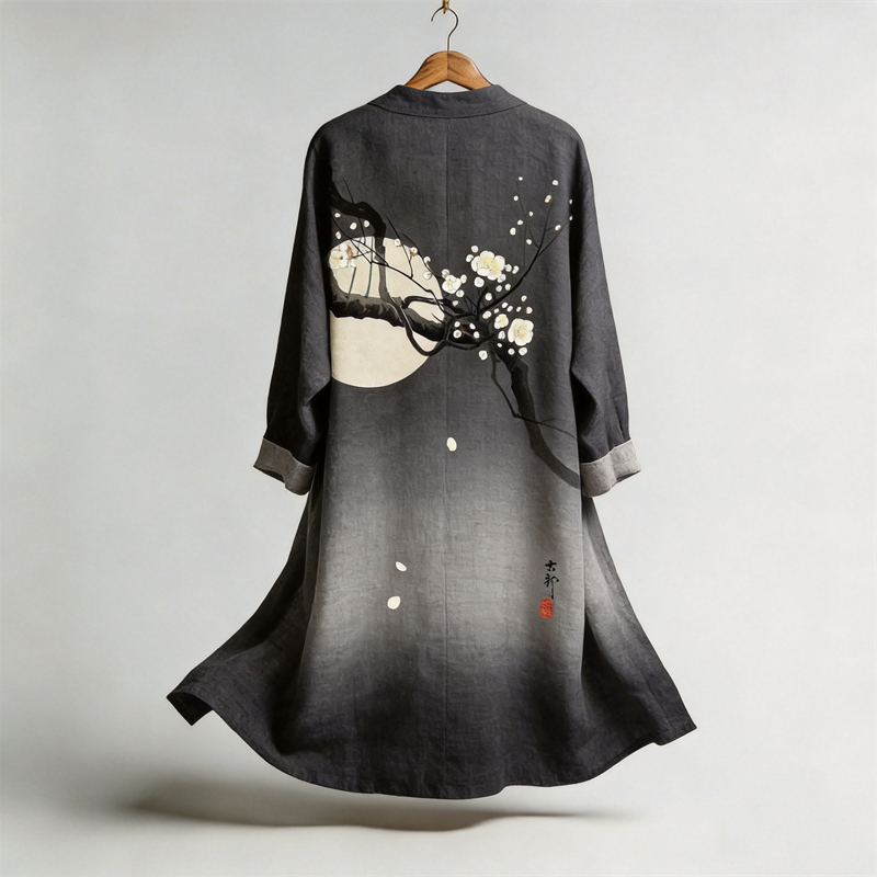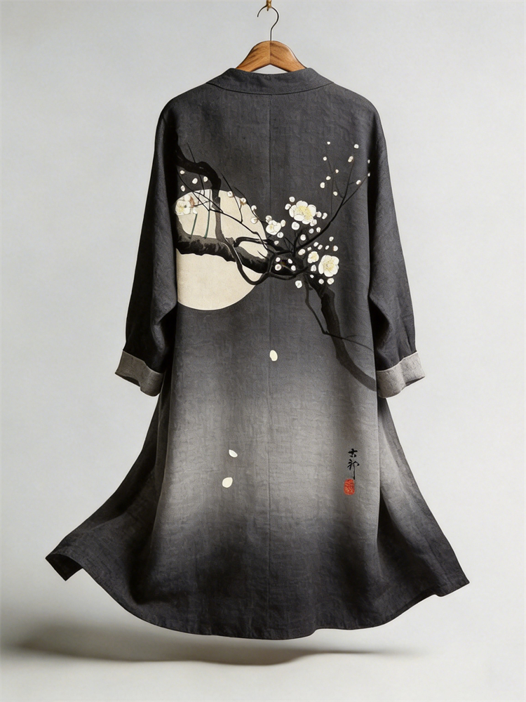 Japanese Plum Blossom Full Moon Gradient Flowy Linen Kimono