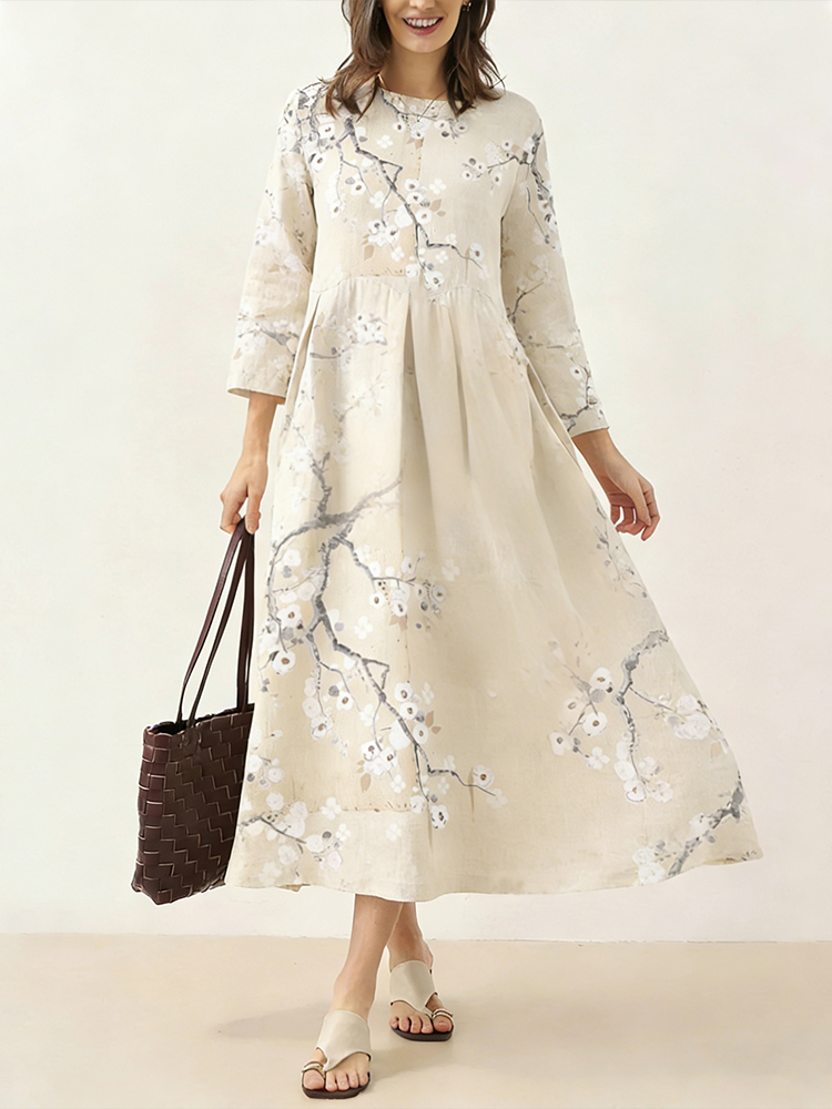 Japanese Retro Cherry Blossom Print Art Comfy Maxi Dress