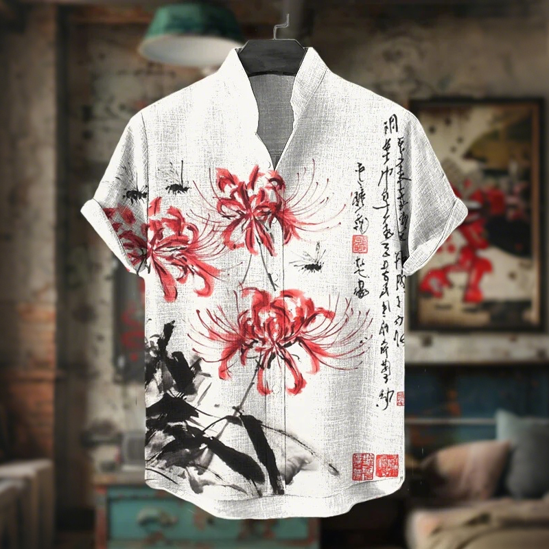 Pattern: Red Spider Lily Calligraphy Ink Painting Art