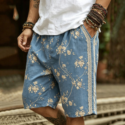 Men's Retro Bohemian Floral Print Casual Linen Shorts