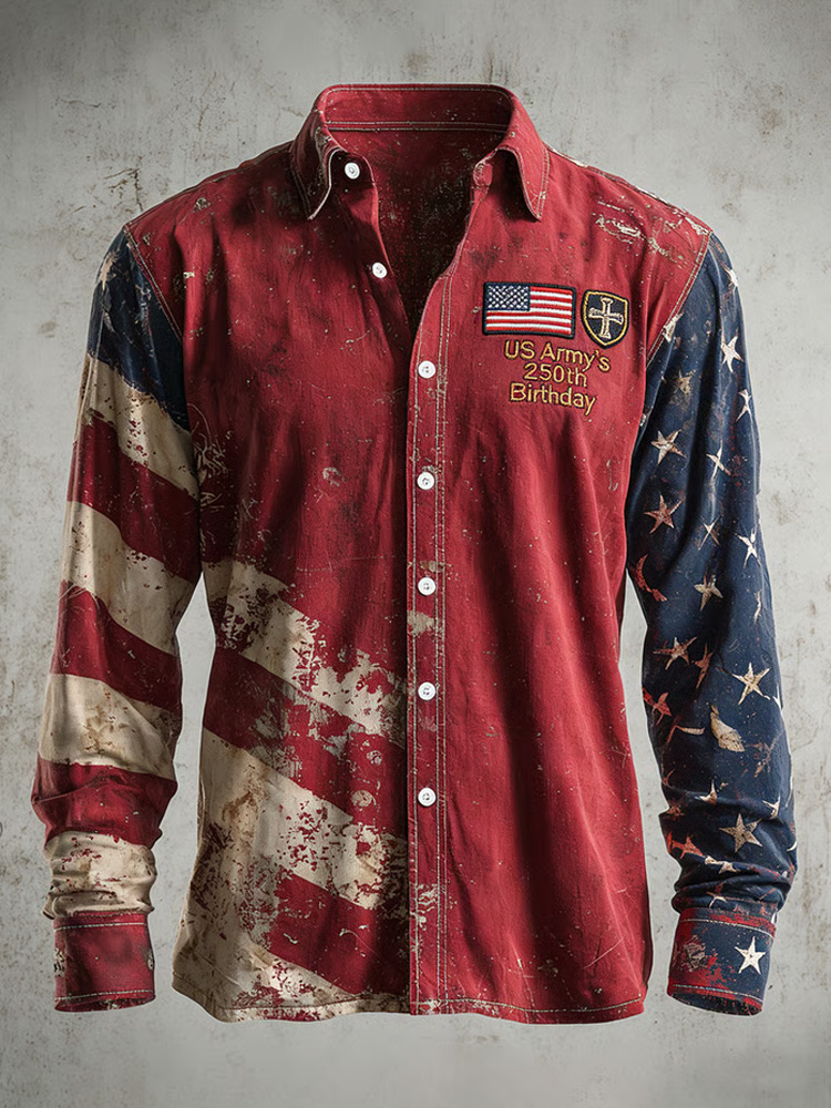 Men's Retro Casual Us Army's 250th Birthday Long-sleeve Shirt