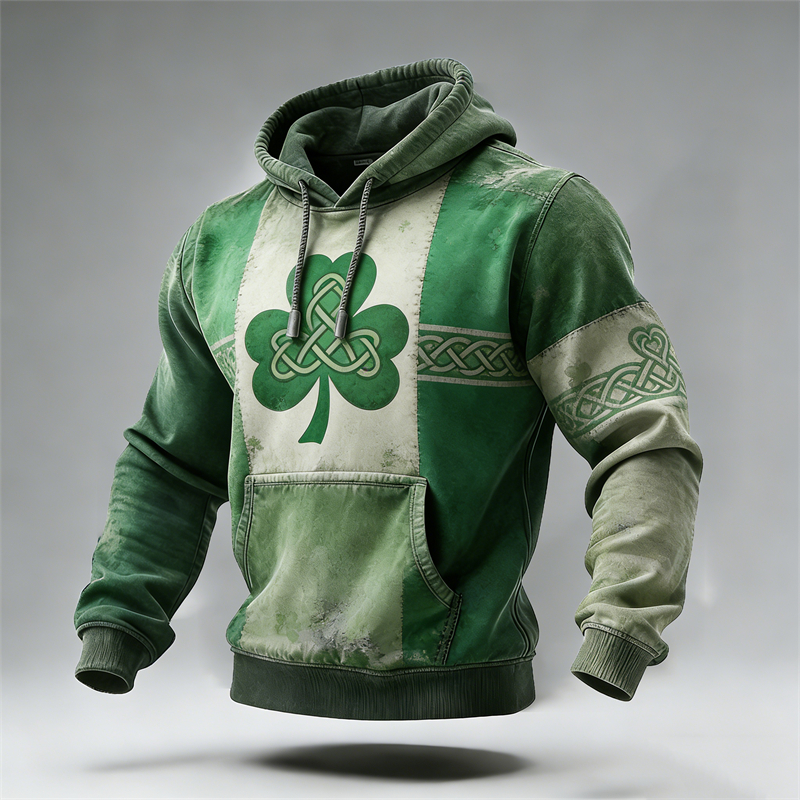 Men's St. Patrick Celtic Shamrock Celtic Knot Colorblock Hoodie