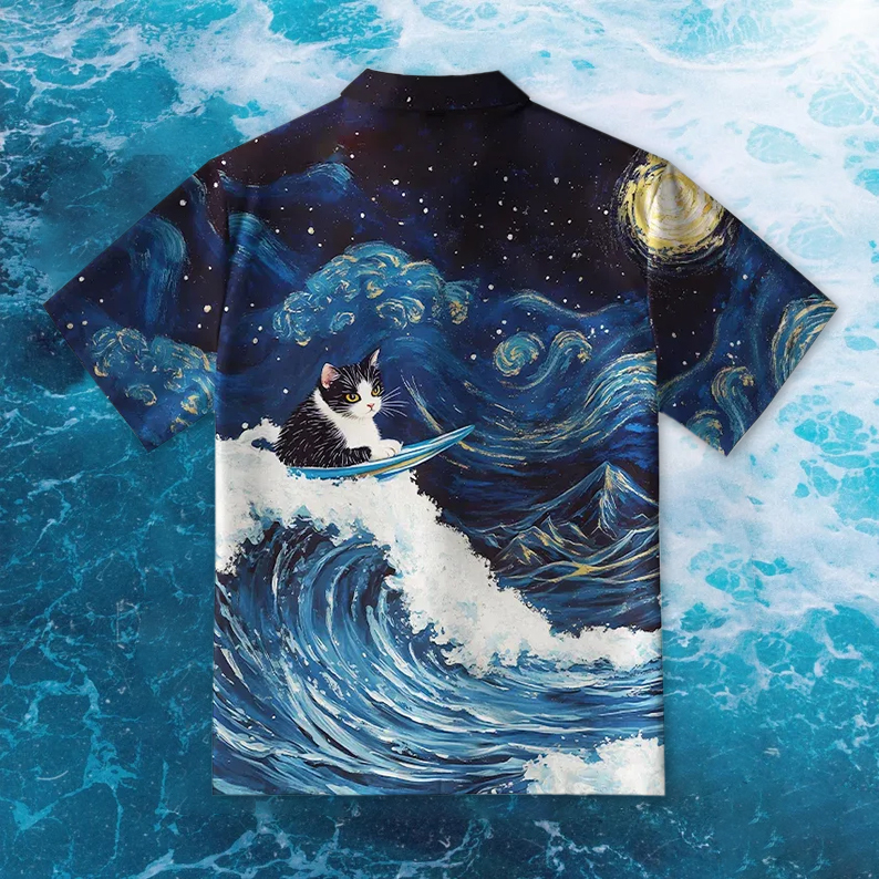 Men's The Great Wave Off Cat Button-up Shirt