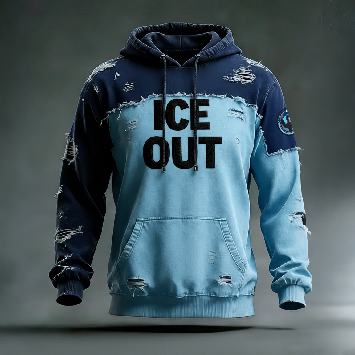 Men's Vintage Ice Out Stand With Minnesota Printed Distressed Hoodie