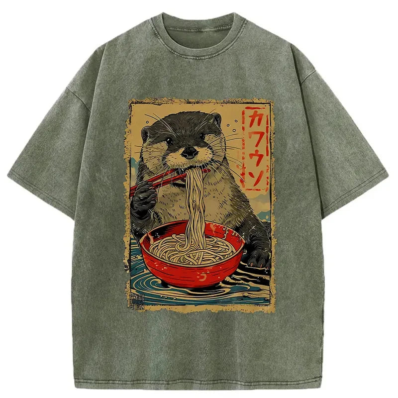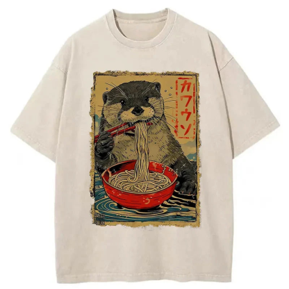 Otter Eating Ramen Japan Washed T-shirt