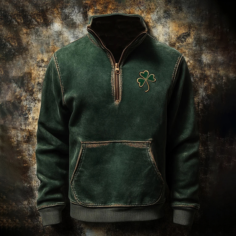 St. Patrick's Day Shamrock Print Half-zip Sweatshirt