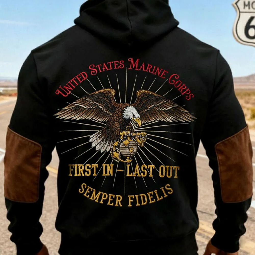 Usmc Eagle Embroidery Hoodie,first In - Last Out&semper Fidelis Motto Commemorative