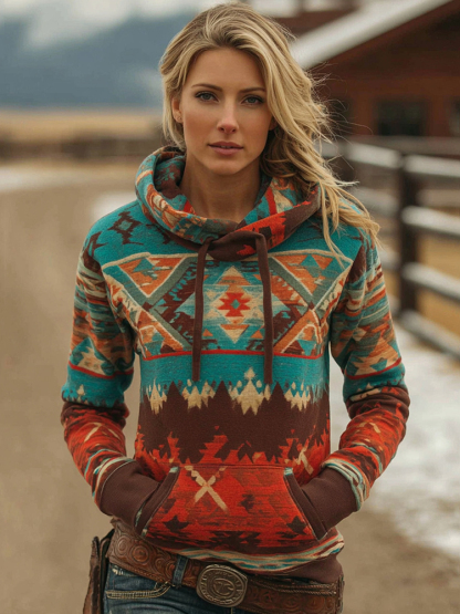 Vintage American Western Ethnic Aztec Pattern Plush Hooded Knitted Sweater