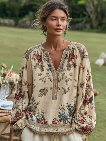 Women's Bohemian Floral V-neck Long-sleeved T-shirt