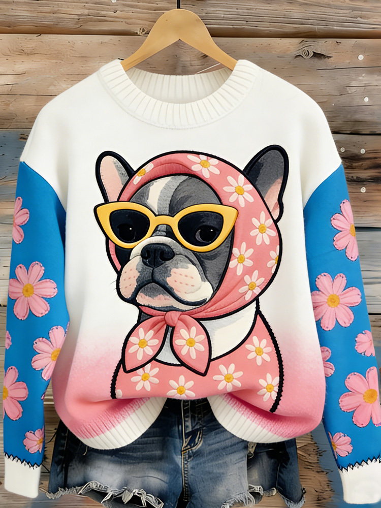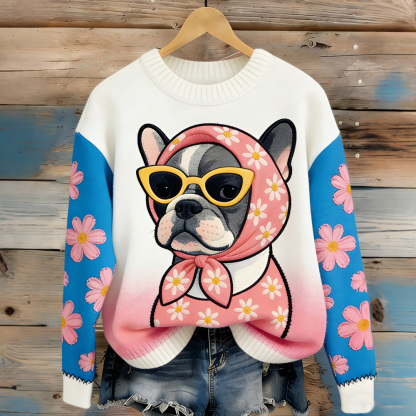 Women's Casual Funny Puppy French Bulldog Print Sweater