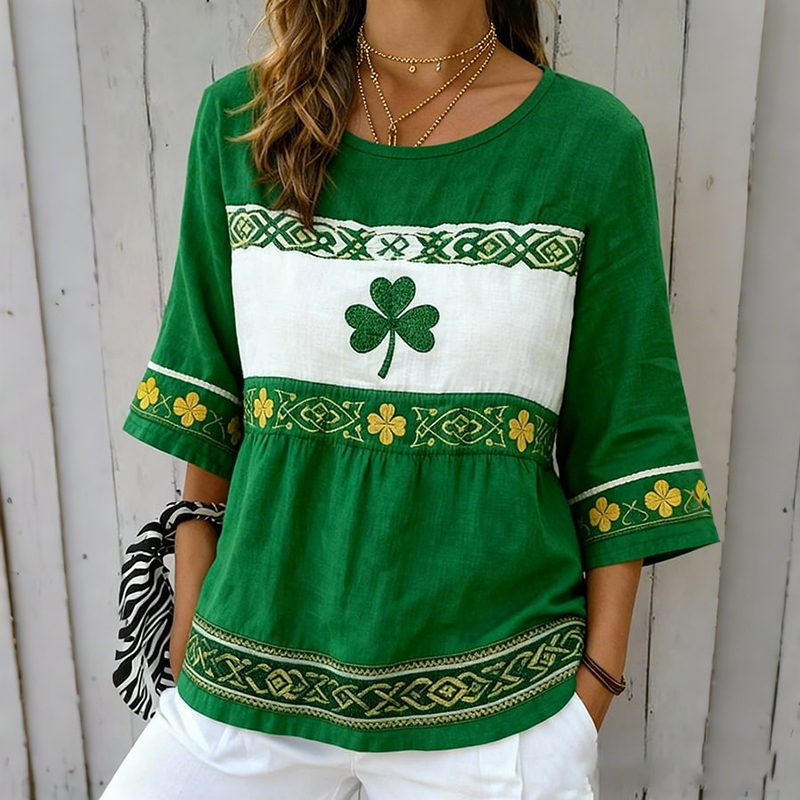 Women's Retro St. Patrick's Day Cotton And Linen Top