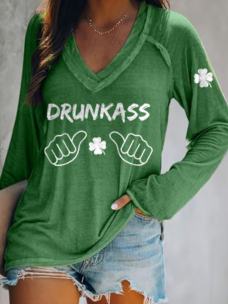 Women's St. Patrick's Day Printed V-neck T-shirt