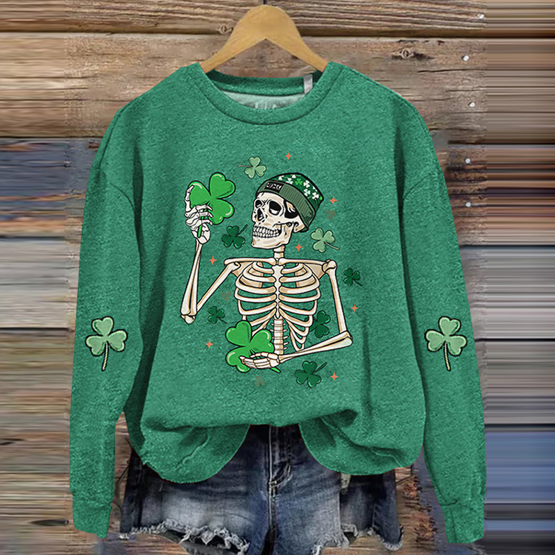 Women's St. Patrick's Day Skull Print Casual Sweatshirt