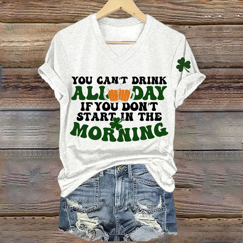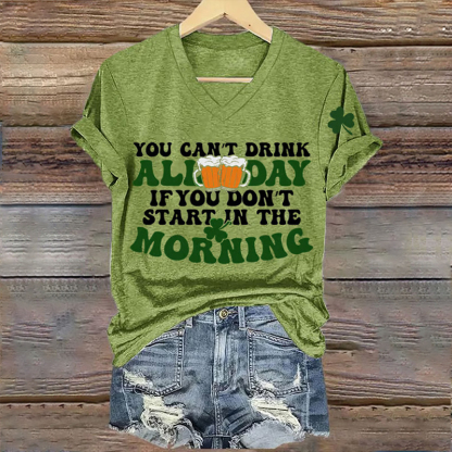 Women's You Cant Drink All Day If You Don't Start In The Morning St. Patrick's Day Printed V-neck T-shirt